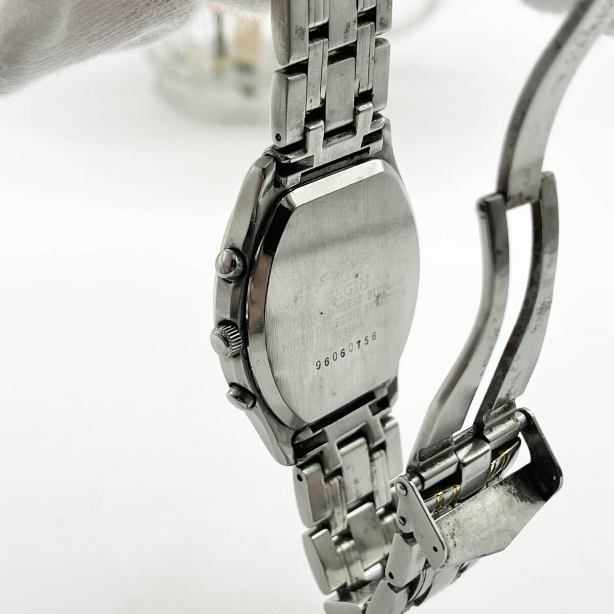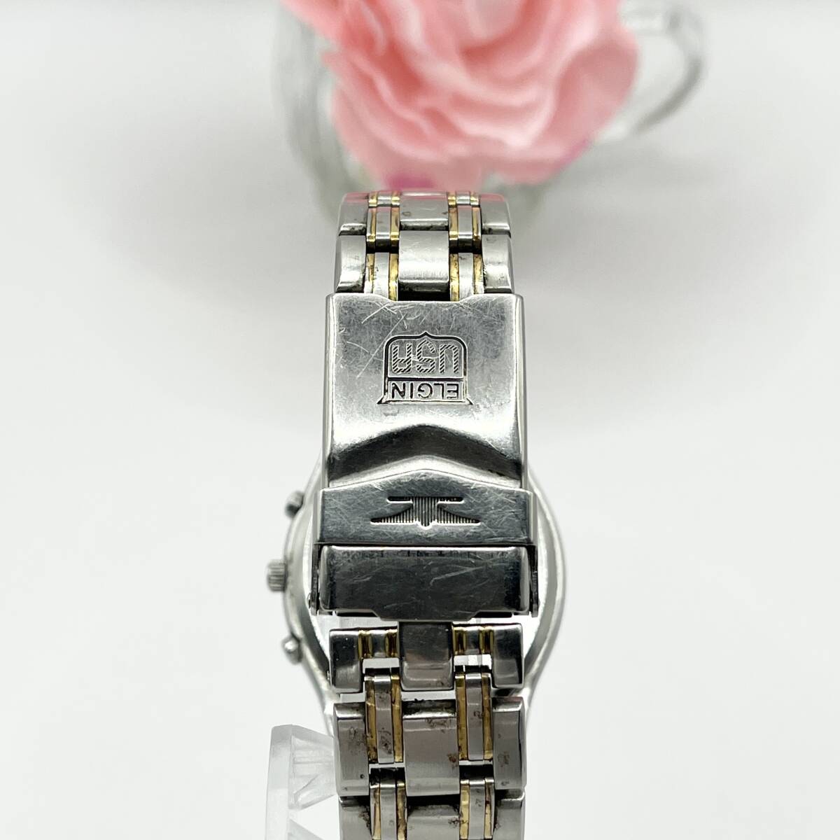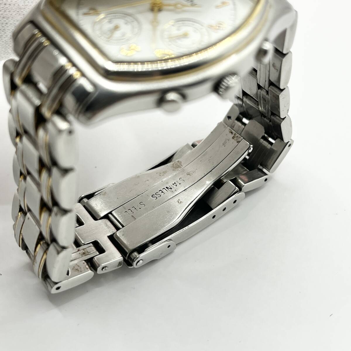 《稼働品》ELGIN★エルジン★クォーツ 腕時計★クロノグラフ★トノー型★メンズ★シルバー×ゴールド★管理616a