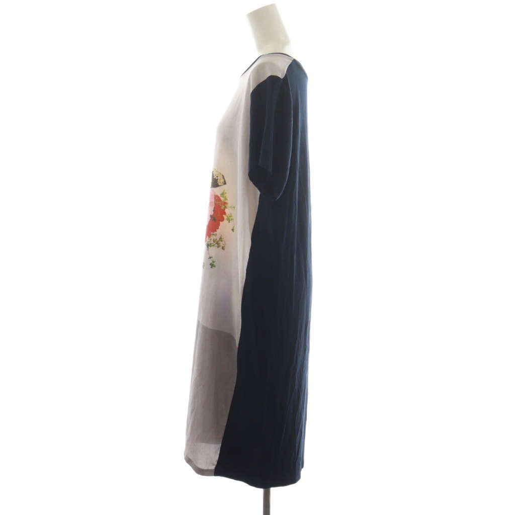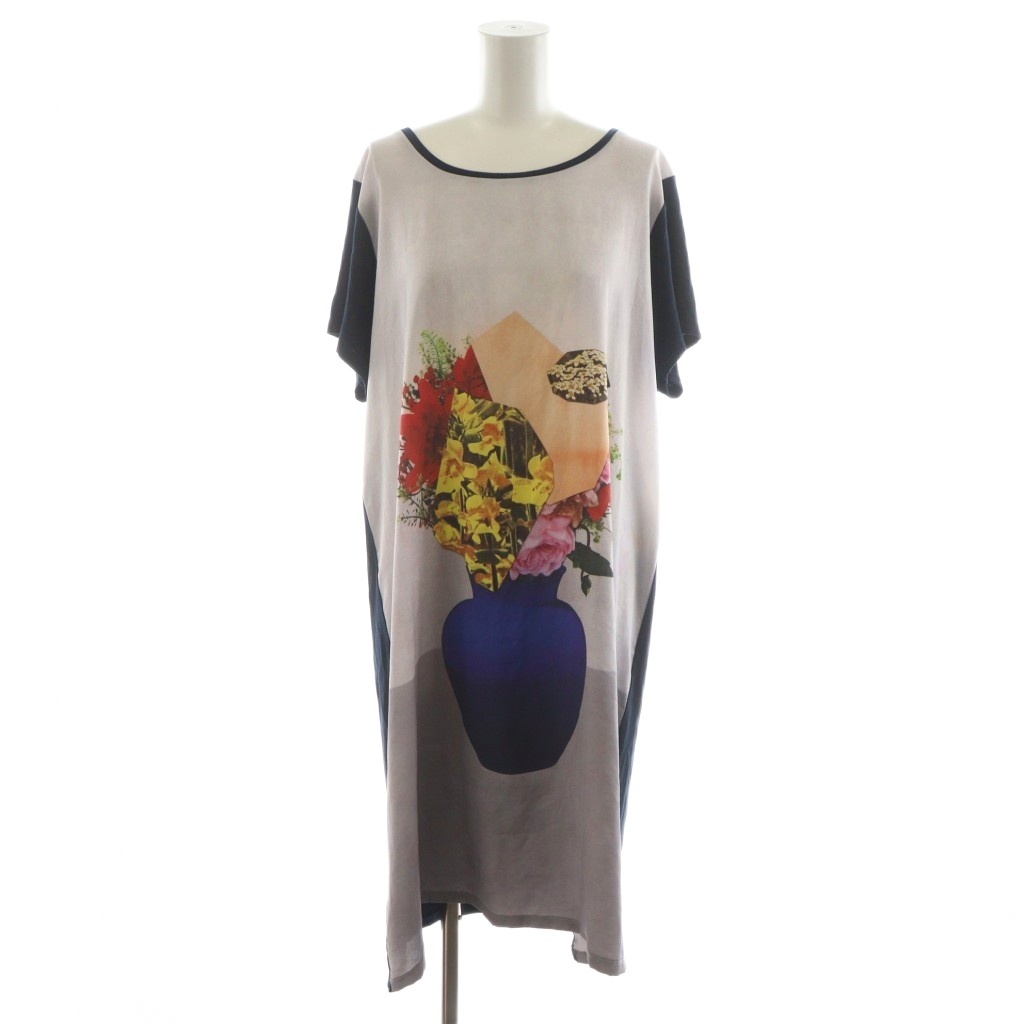 ピーエスポールスミス PS Paul Smith ワンピース ひざ丈 花柄 半袖 XL グレー 紺 ネイビー KKPSLW0853 /AN30 レディース