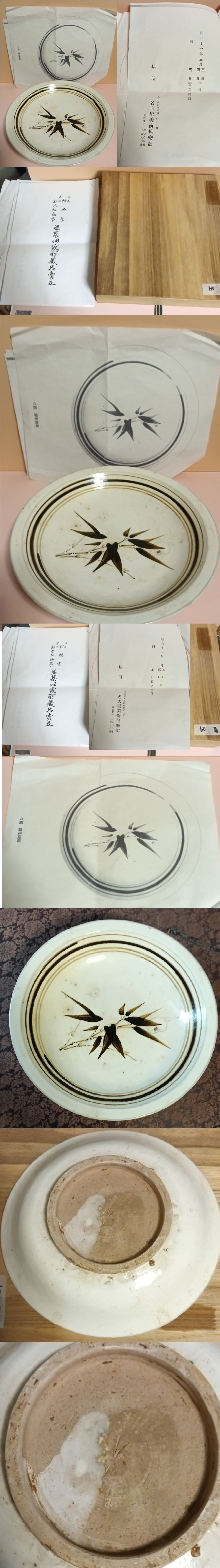 宋代 白磁 磁州 皿 竹紋 昭和11年(1936年)名古屋美術倶楽部出品資料 時代保証 本物保証 唐物