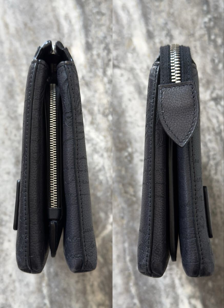 旧型のテルシオはベルルッティの定番となるベネチアレザーでしたが、2024年冬より限定で展開されたこちらはバッグと同じしっかりと厚みがあるレザーを使用しております。
