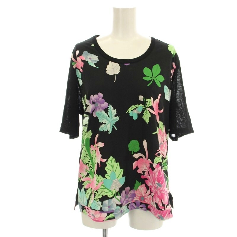 レオナールスポーツ LEONARD SPORT カットソー 0548528 ニット Tシャツ 半袖 花柄 44 黒 ピンク