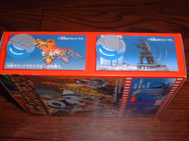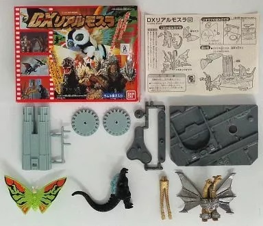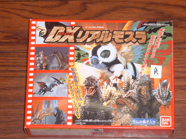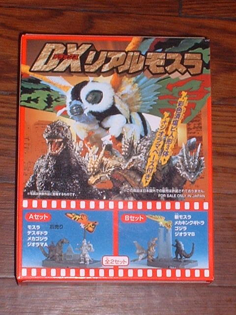 ●1996年、バンダイから食玩として発売された彩色済ゴジラ怪獣フィギュア、「DXリアルモスラ Bセット/フィギュア3体+ギミック内蔵ジオラマベースセット」です。