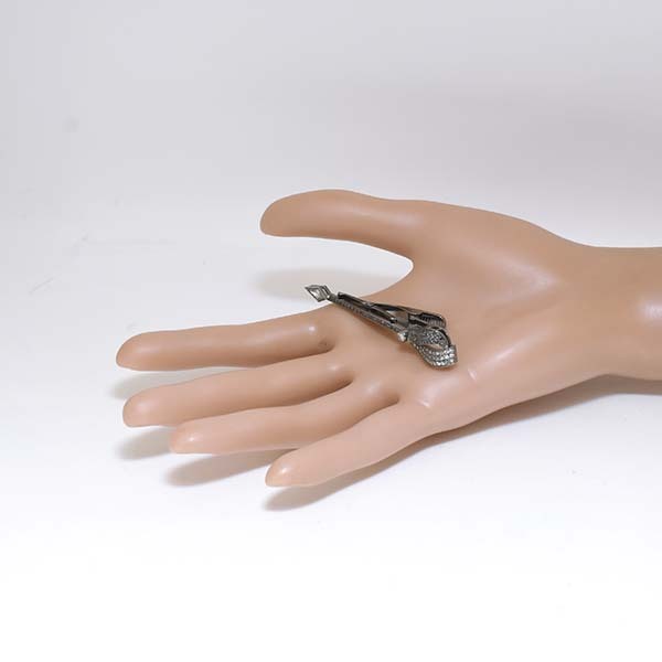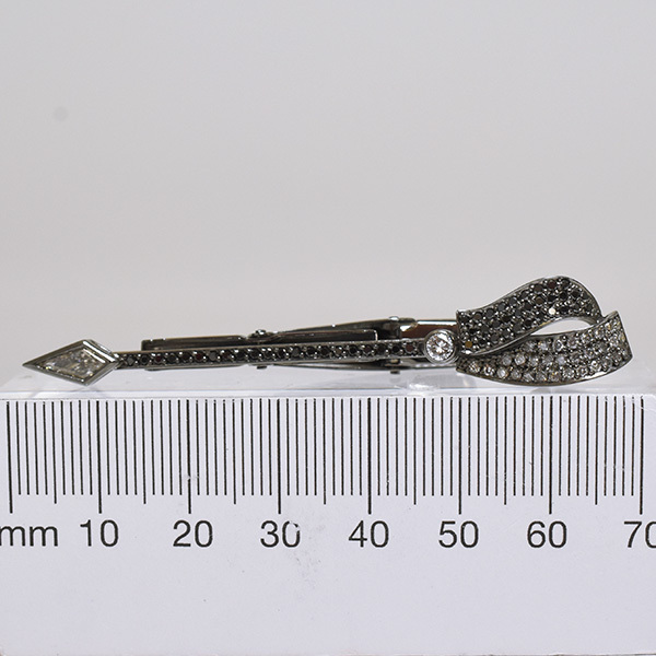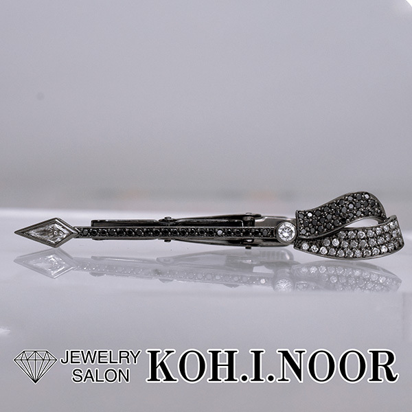 ブラックメッキのホワイトゴールドにダイヤをセットしたタイバー。