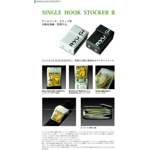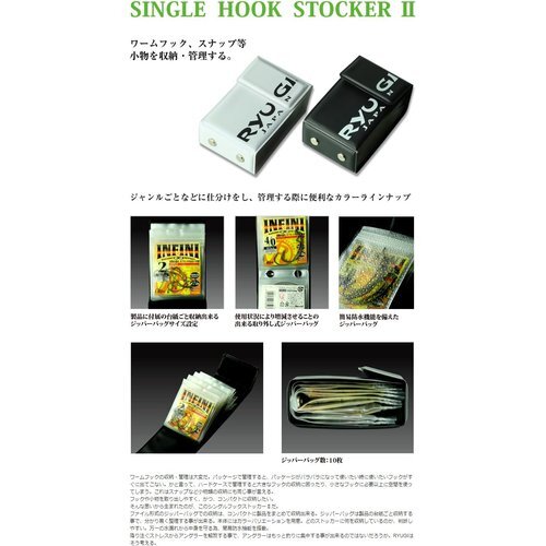 ワームフックの収納・管理は大変だ。パッケージで管理すると、パッケージがバラバラになって使いたい時に使いたいフックがすぐに出てこない。かと言って、ハードケースで管理すると大きなフックの収納に困ったり、小さなフックに必要以上に空間を使ってしまう。これはスナップなど小物類の収納にも同じ事が言える。フックや小物を取り出しやすく、かつ、コンパクトに収納したい。そんな思いから生まれたのが、このシングルフックストッカーⅡだ。ファイル形式のジッパーバッグでの収納は、コンパクトに製品をまとめて収納出来る。ジッパーバッグは製品の台紙ごと収納する事で、分かり易く整理する事が出来る。本体にはカラーバリエーションを用意。どのストッカーに何を収納しているのか、判断しやすい。万一の水漏れから中身を守る為、簡易防水機能を搭載。降り注ぐストレスからアングラーを解放する事で、アングラーはもっと釣りに集中する事が出来るのではないだろうか。RYUGIはそう考える。
