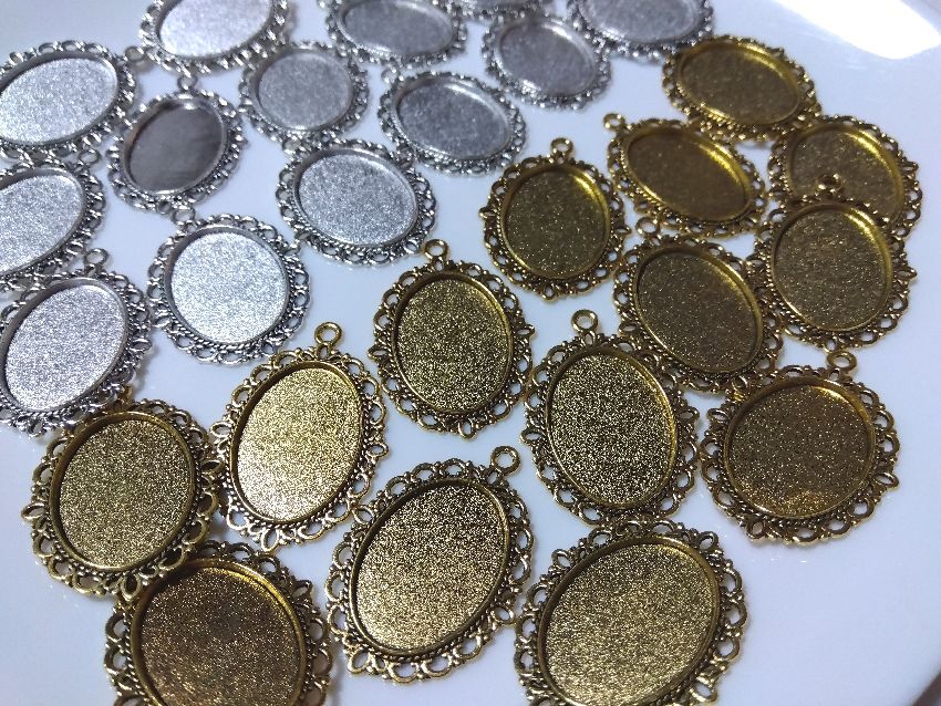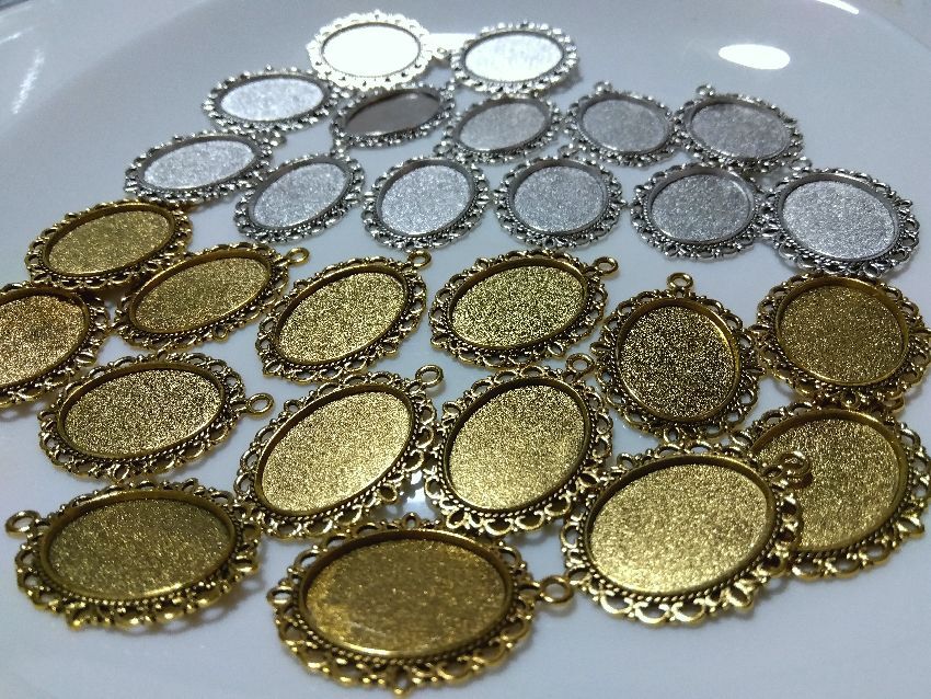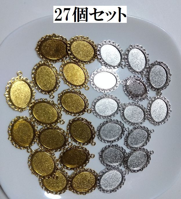 手芸用品け68■ペンダントミール皿土台27個セット■アンティーク調金古美銀古美*ネックレスアクセサリーパーツハンドメイド