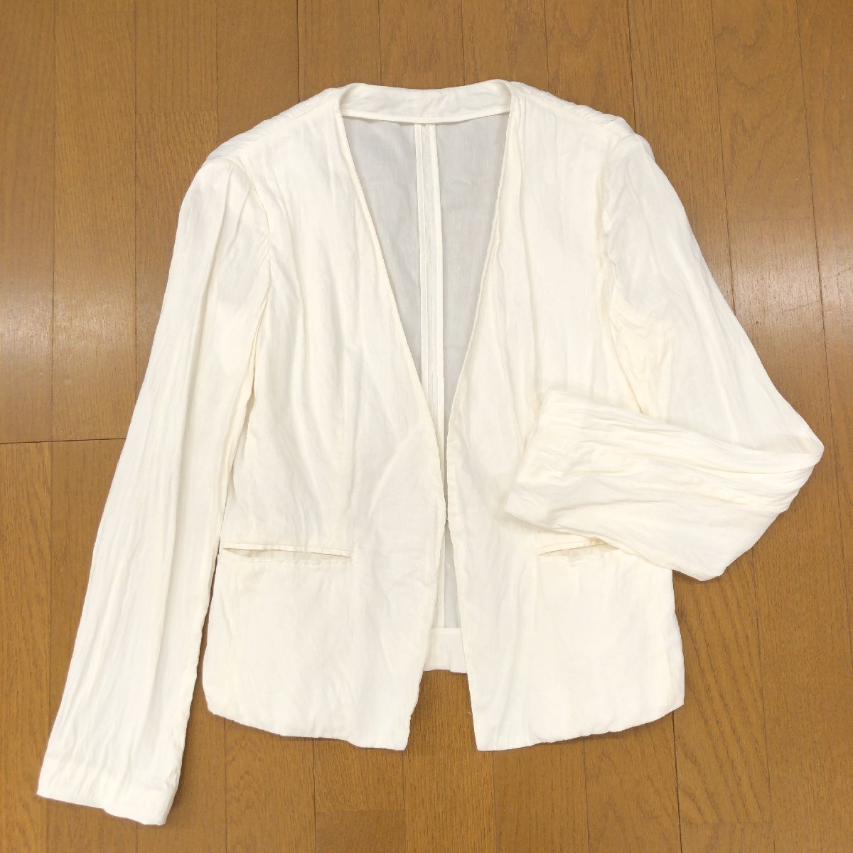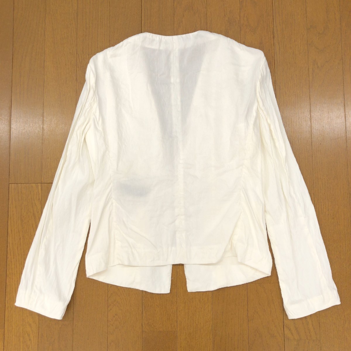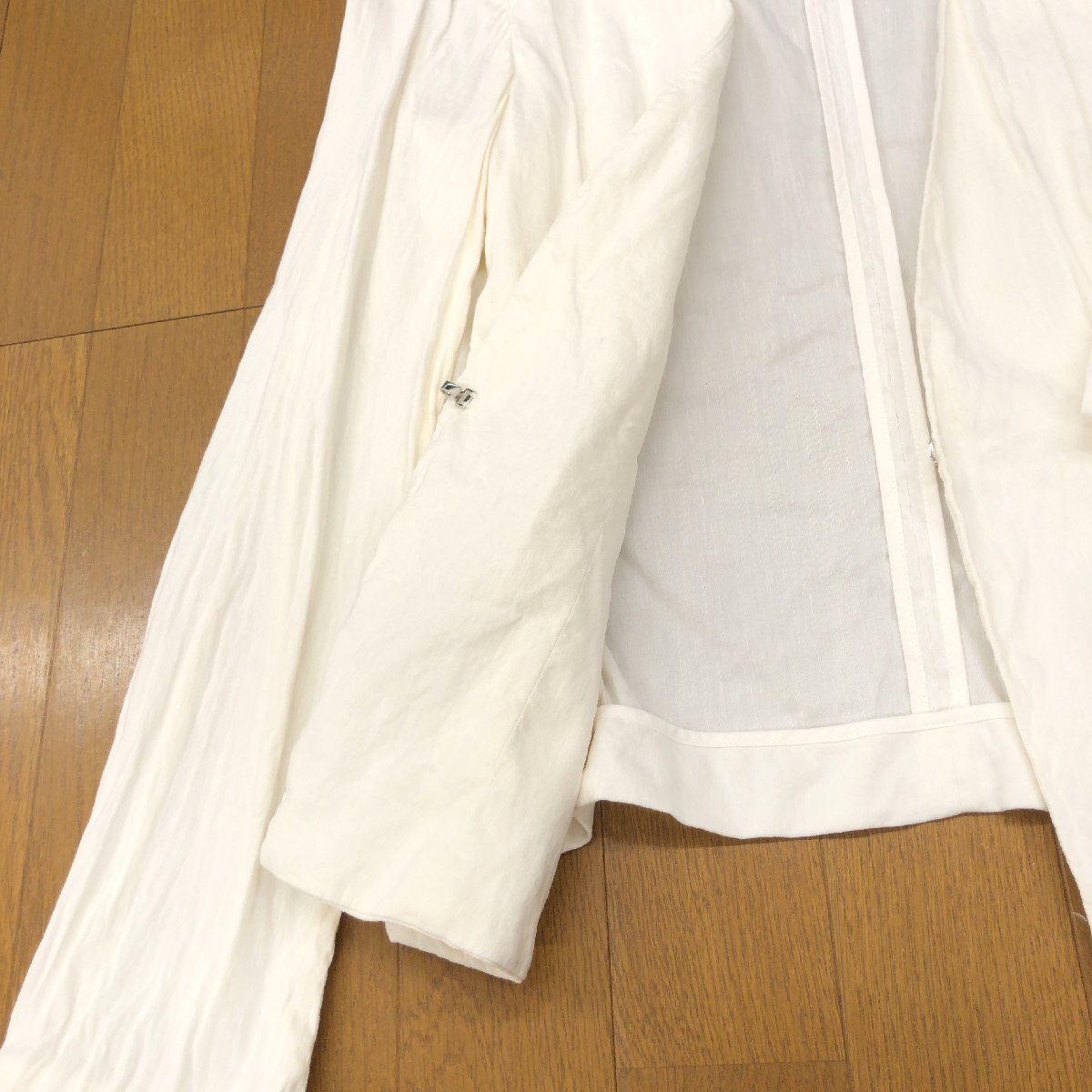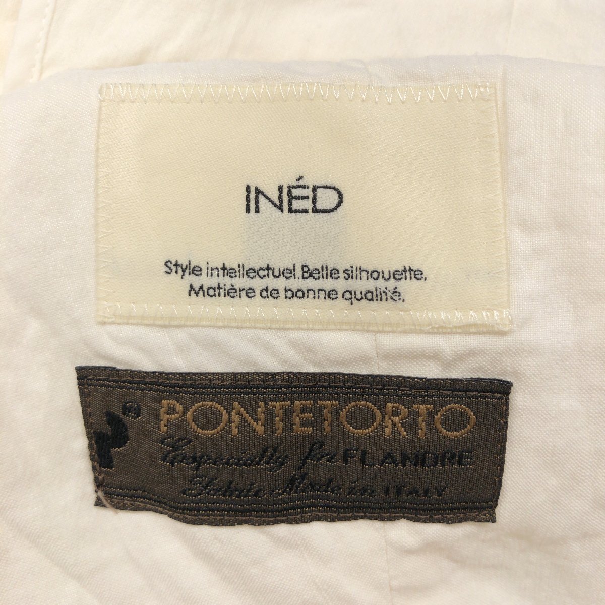 INED イネド 伊PONTETORTO社製生地 ストレッチ 麻 リネン ノーカラージャケット 7 アイボリー 羽織り 薄手 春夏 レディース 婦人
