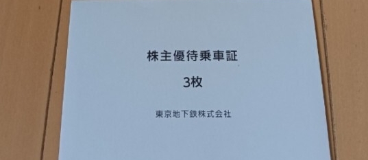 東京メトロ 株主優待 乗車券3枚