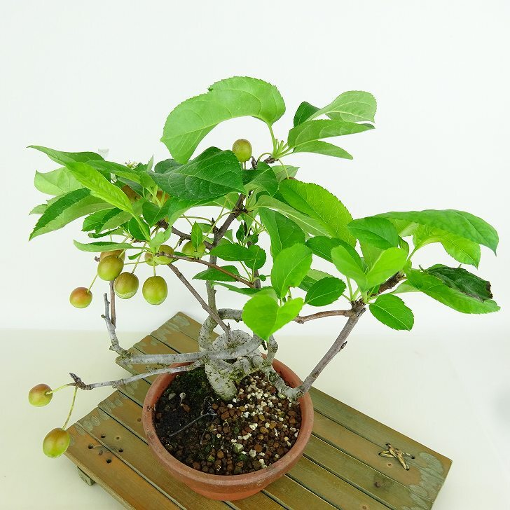 | ■植物ですので撮影時期や季節によって剪定などの手入れにより写真から変化がございます。撮影日をご確認のうえ、ご注文ください。 【海棠盆栽】 深山海棠は植物学的にはズミの総称です。山野の日当たりの良い場所に生えています。別名をコリンゴともいいます。名前の由来は「染み」で樹皮を黄色の染料にしたことによります。花は白色か淡紅色。秋に熟する実は食用。ここでは、赤実のズミをミヤマカイドウ。黄実に熟するものをキミズミとして分けています。 |