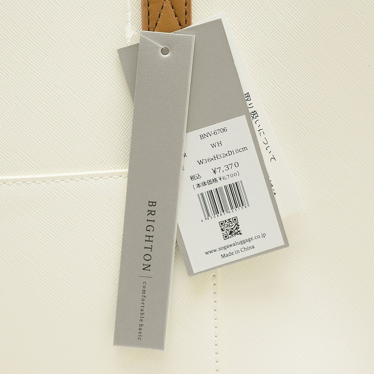 ◇560684 未使用品 BRIGHTON ITTOKI トートバッグ スクエアデザインA4収納 BNV-6706 PUサフィアーノレザー レディース ホワイト