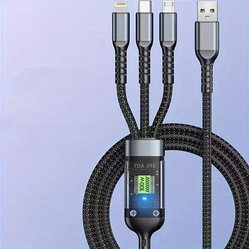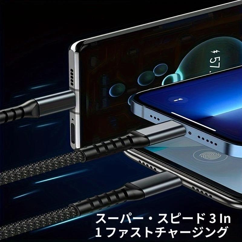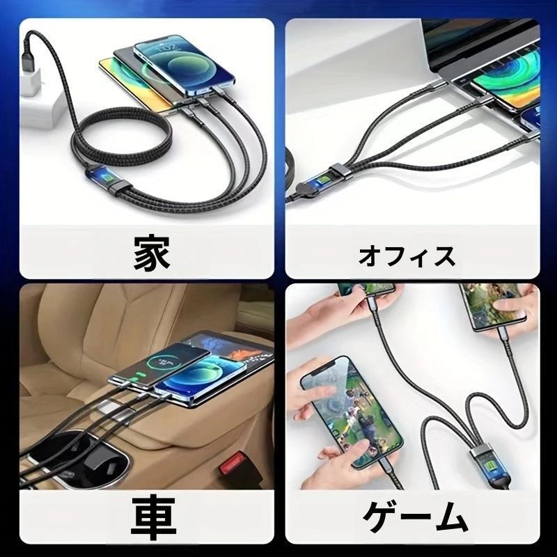 ♪ご覧いただきありがとうございます♪★100W 3-in-1高速充電ケーブル★iPhone 14/13/12/11 Pro Max/SE/X/8/7/6対応★各種スマートフォン&デバイス互換★マルチコネクター、データ伝送可能