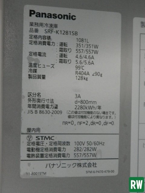 | 【23年製】4面 縦型冷凍庫 パナソニック SRF-K1281SB 100V 業務用 厨房 店舗 4ドア Panasonic 1081L |