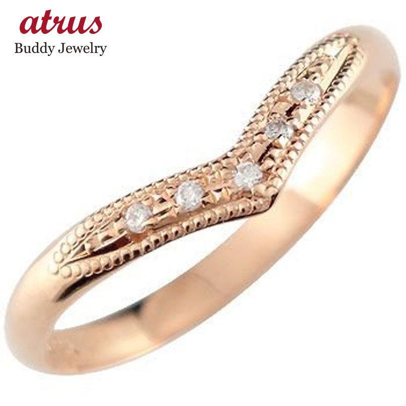 リング 指輪 婚約指輪 ブライダルリングです 指輪 レディースダイヤモンド リングで希少価値の高いダイヤモンド結婚指輪 ピンクゴールド婚約指輪 エンゲージリング V字リング ダイヤモンド ダイヤ ピンキーリング 指輪 ミル打ち ピンクゴールドk18 k18pgハンドメイドジュエリー
