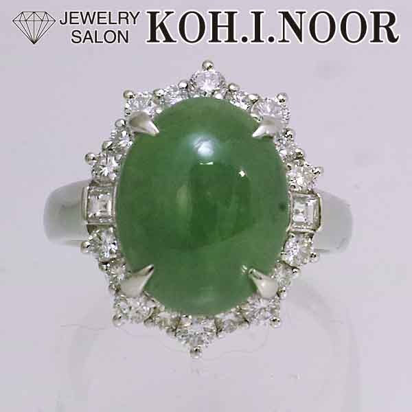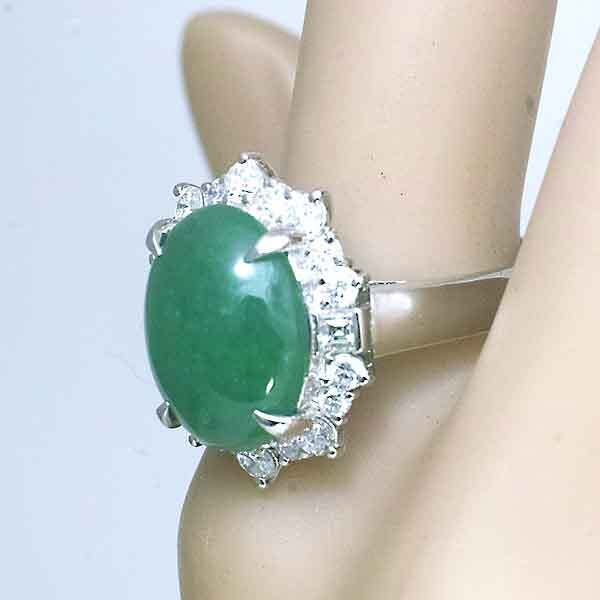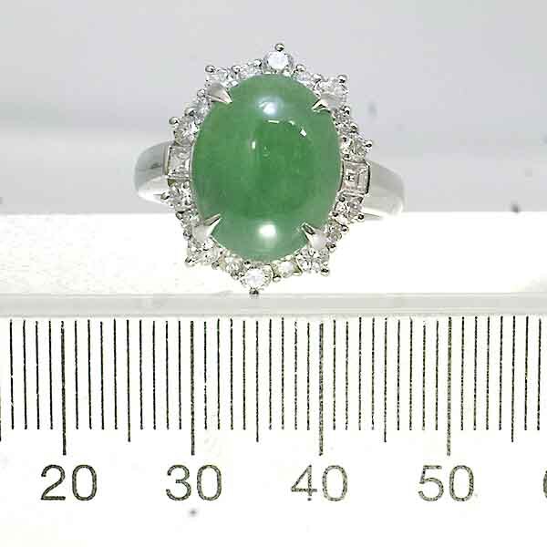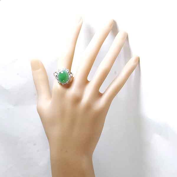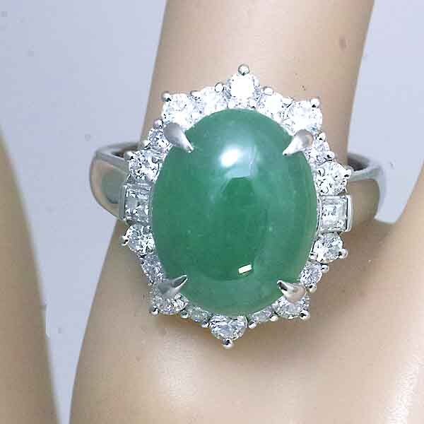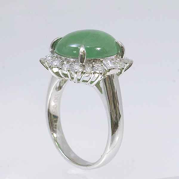 翡翠をダイヤで取り巻いたプラチナ製のファッションリング。