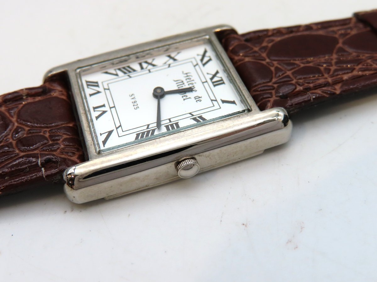1円 Helene de michel SV925/革 ホワイト文字盤 レディース 稼働 QZ 2462403