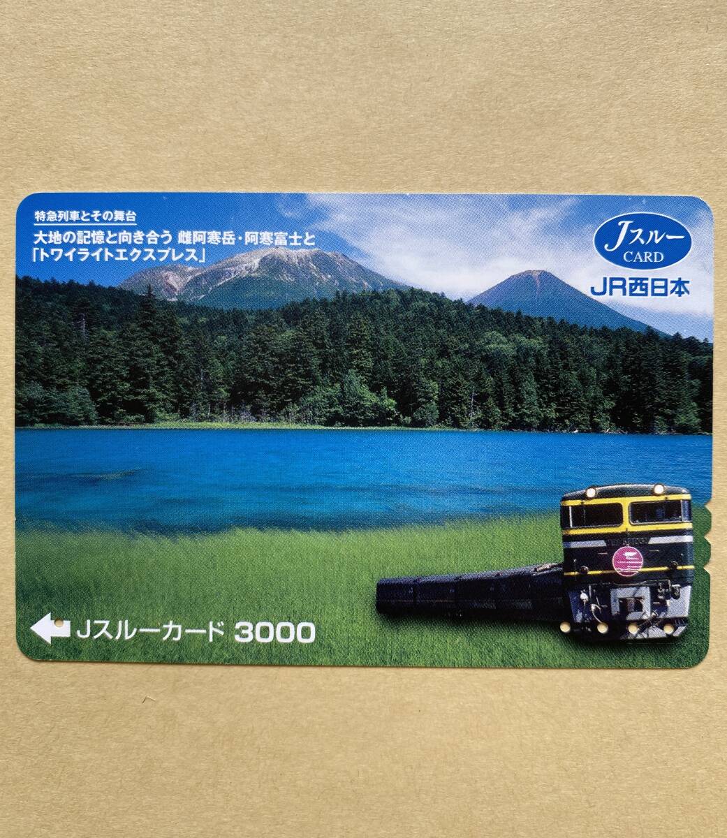 【使用済】 Jスルーカード JR西日本 特急列車とその舞台 大地の記憶と向き合う 雌阿寒岳・阿寒富士と「トワイライトエクスプレス」