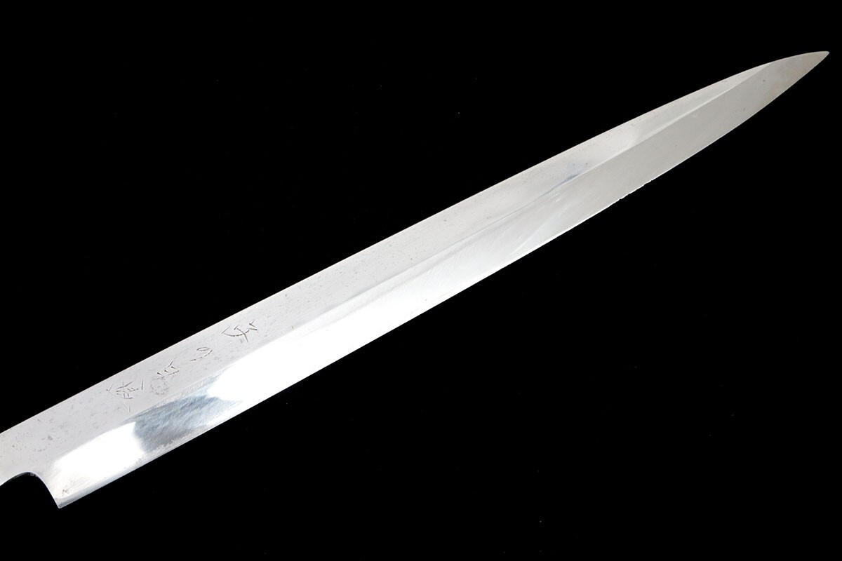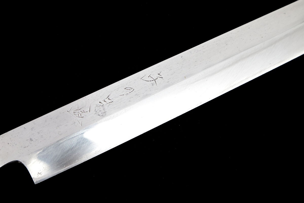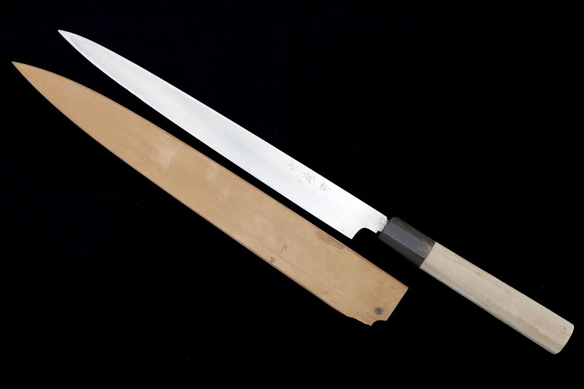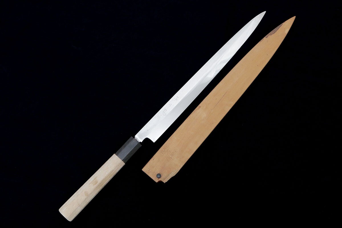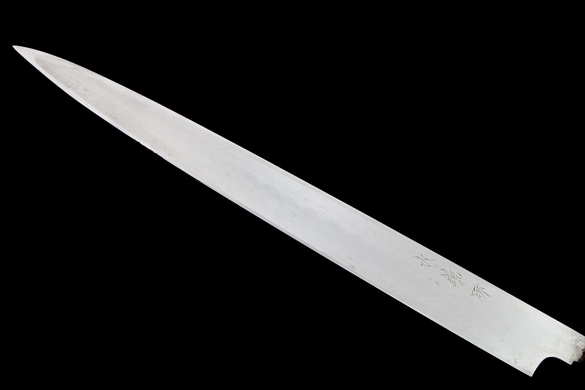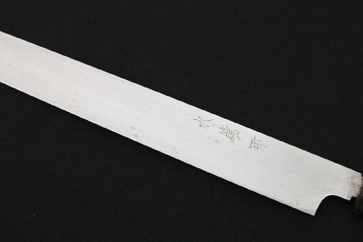 美品|子の日 河豚引包丁 本焼 九寸半 水鏡研 朴柄 鞘付 KN02-B2059-2L4