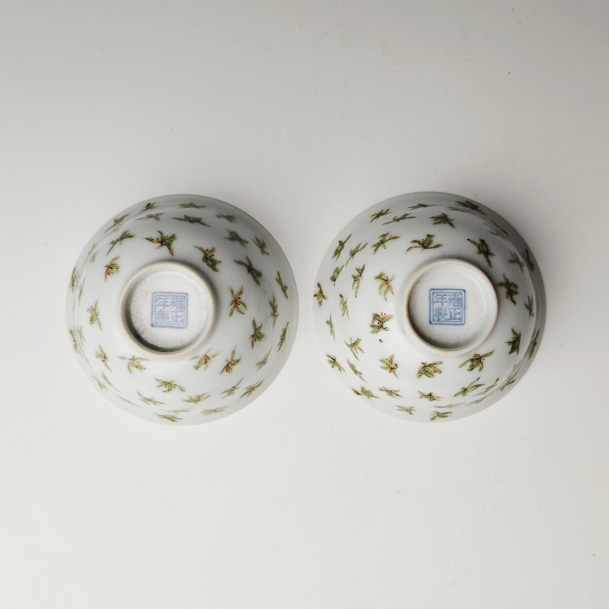 唐物 粉彩果実紋小碗 一対 雍正年製 款 景徳鎮 中国美術 B3-73++