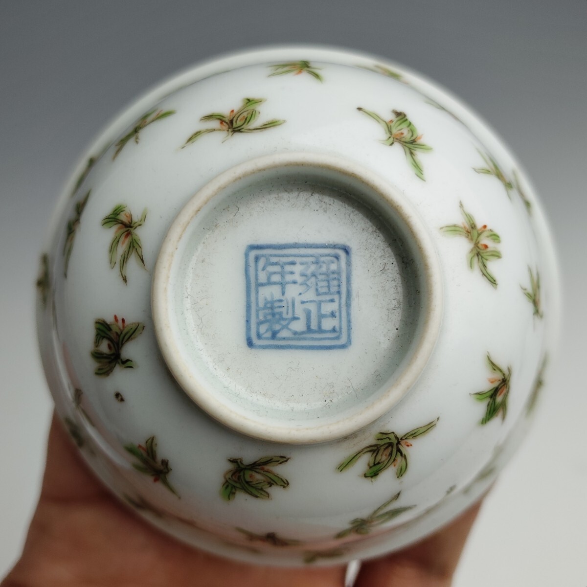 【商品の説明】唐物 粉彩果実紋小碗 一対 雍正年製 款 景徳鎮 中国美術 B3-73++