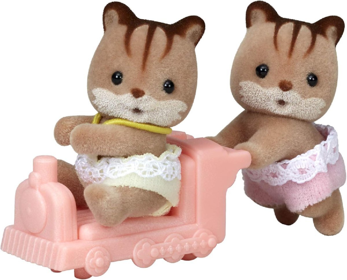 くるみリスのふたごちゃん(おすわり)、くるみリスのふたごちゃん(はいはい)、手押しぐるま(きしゃ・ピンク)、森のおはなし