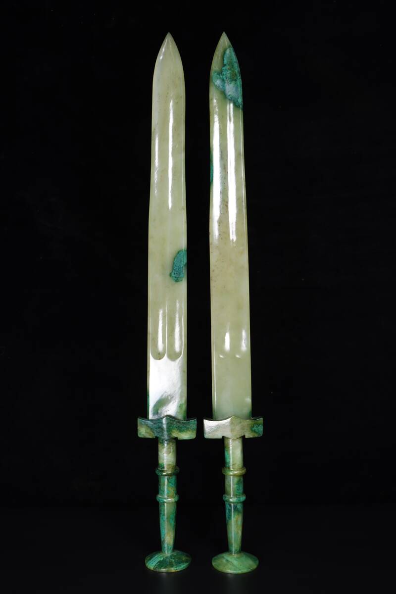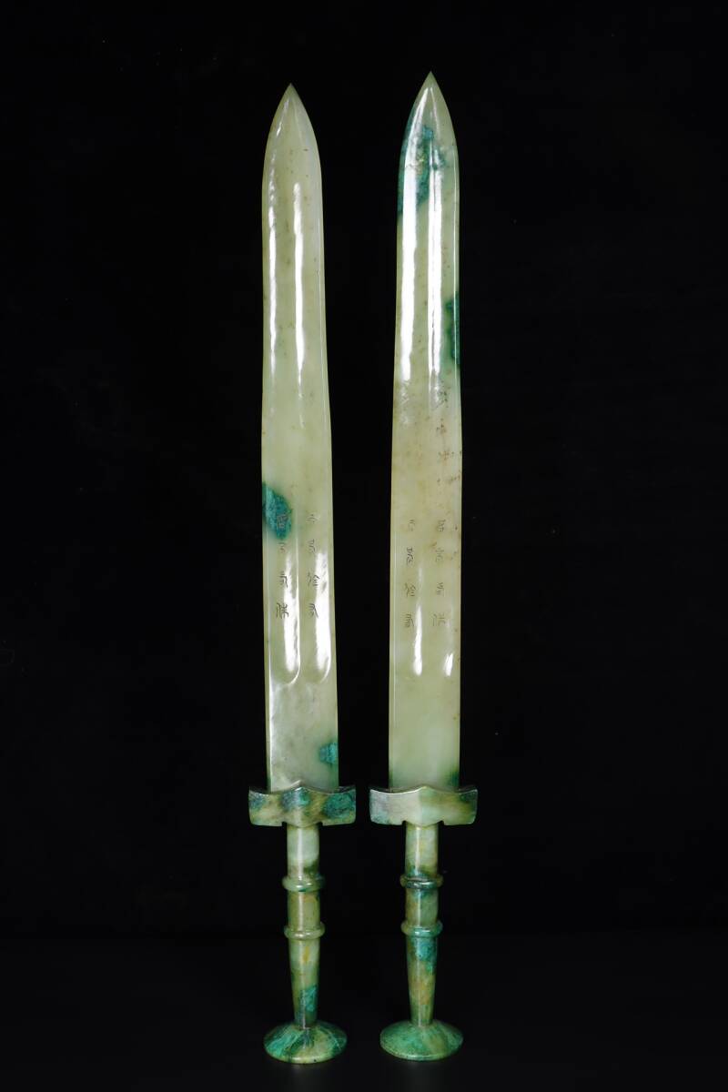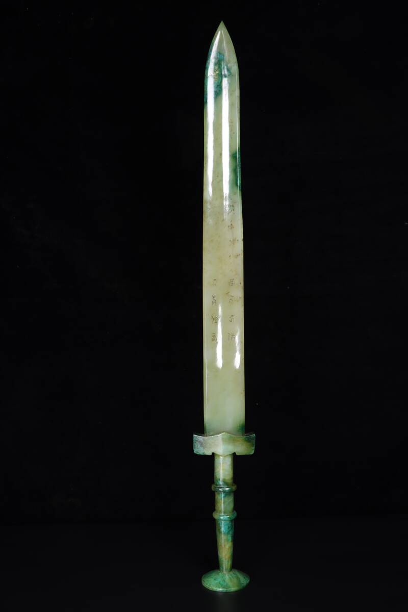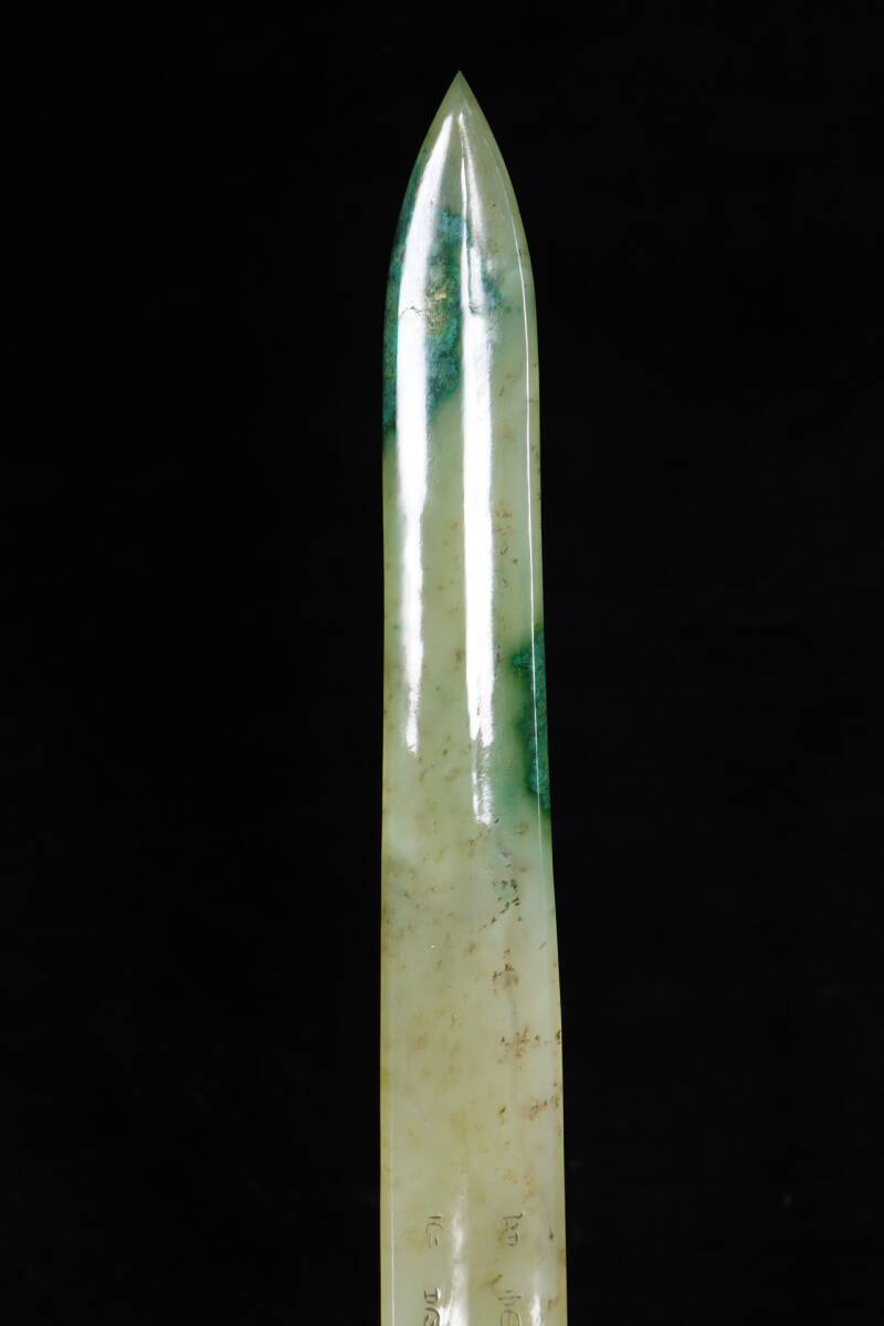 唐物 清 玉彫 和田玉 剣 包漿厚重 置物 極細工 中国古玩 骨董品 古美味 D69