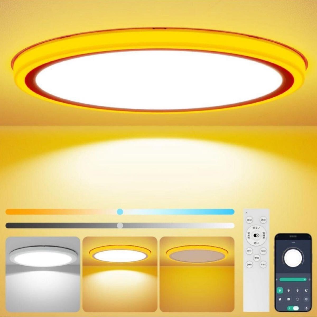 ○ledシーリングライト高発光率ledレンズを使用し、45Wの消費電力で5500lmの高輝度を実現します(輝度は蛍光灯の2倍です)。新たにアップグレードされた間接光の常時点灯と白色LEDの同時点灯機能により、より明るく透明な光を放ち、10-12畳の部屋を全方向から照らすことができます。○厚さ3.3cmの極薄デザインとサイドライトの組み合わせで、空間を取らず、温かい家庭のロマンチックな雰囲気を演出します。