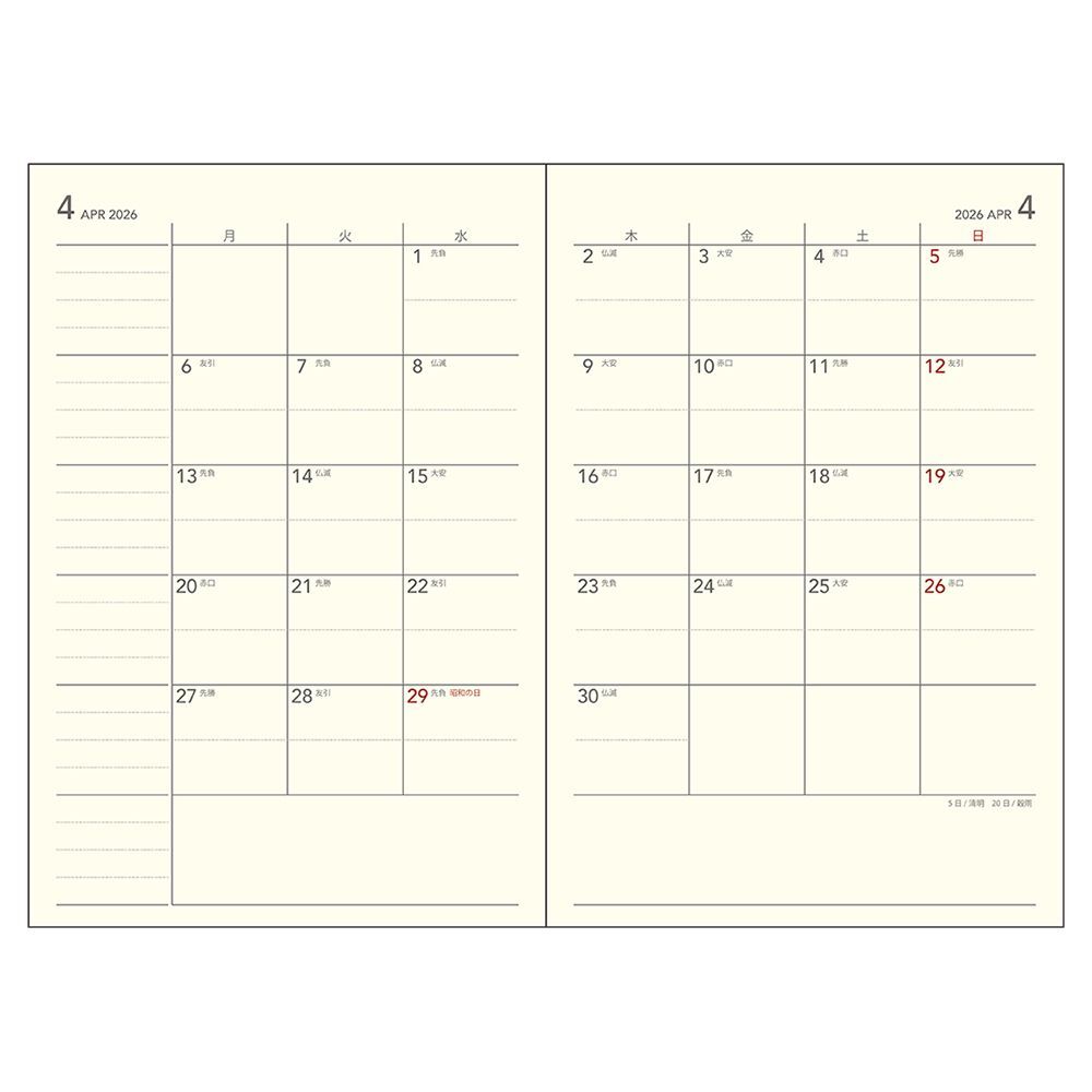 アポイント / Appoint E8151 は、1ヶ月の予定を曜日ごとに把握しやすい、カレンダーと同じ感覚で使える月間予定表です。