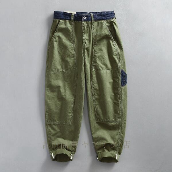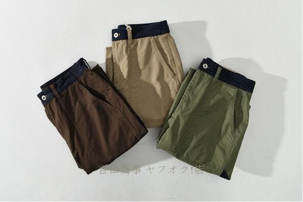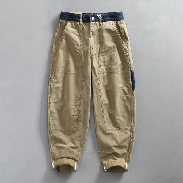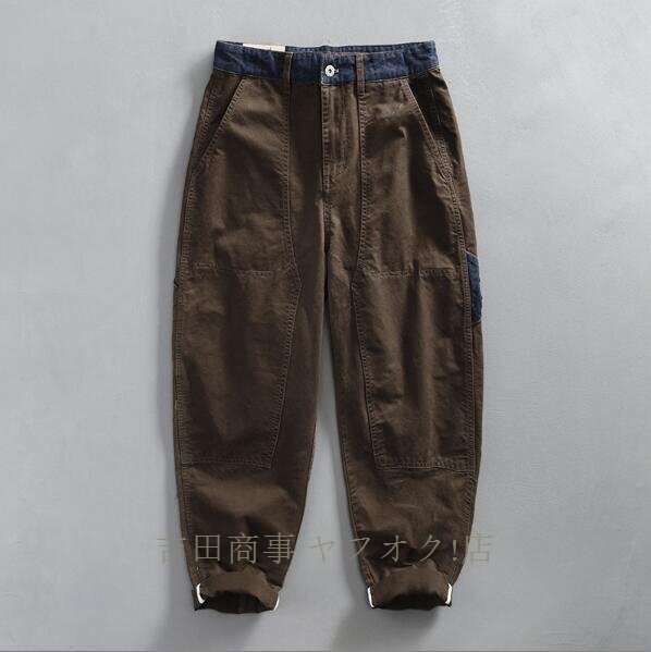 ☆新品エレガント カーゴパンツ チノパン メンズ ワークパンツ 切替 カジュアル ボトムス 作業ズボン アウトドア 珈琲色 W38