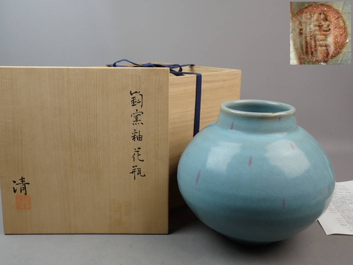 人間国宝、原清、鈞窯釉花瓶、共箱です。