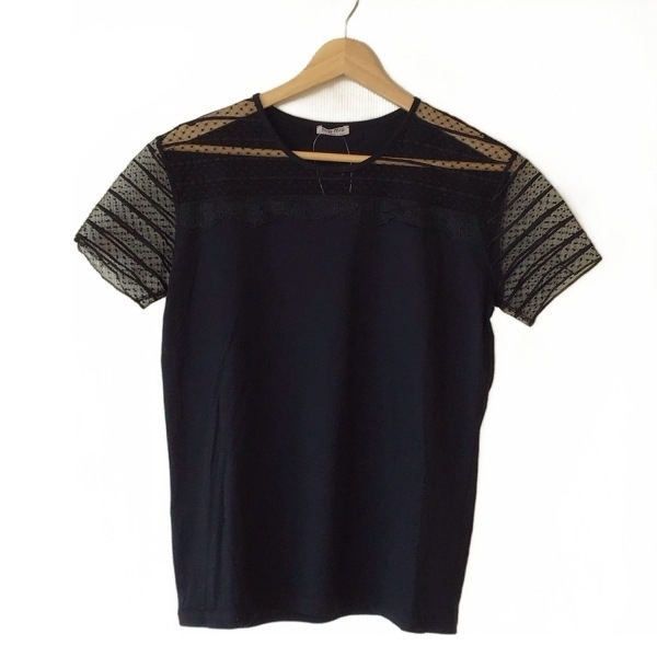 ミュウミュウ miumiu 半袖カットソー サイズS - 黒 レディース クルーネック/レース トップス
