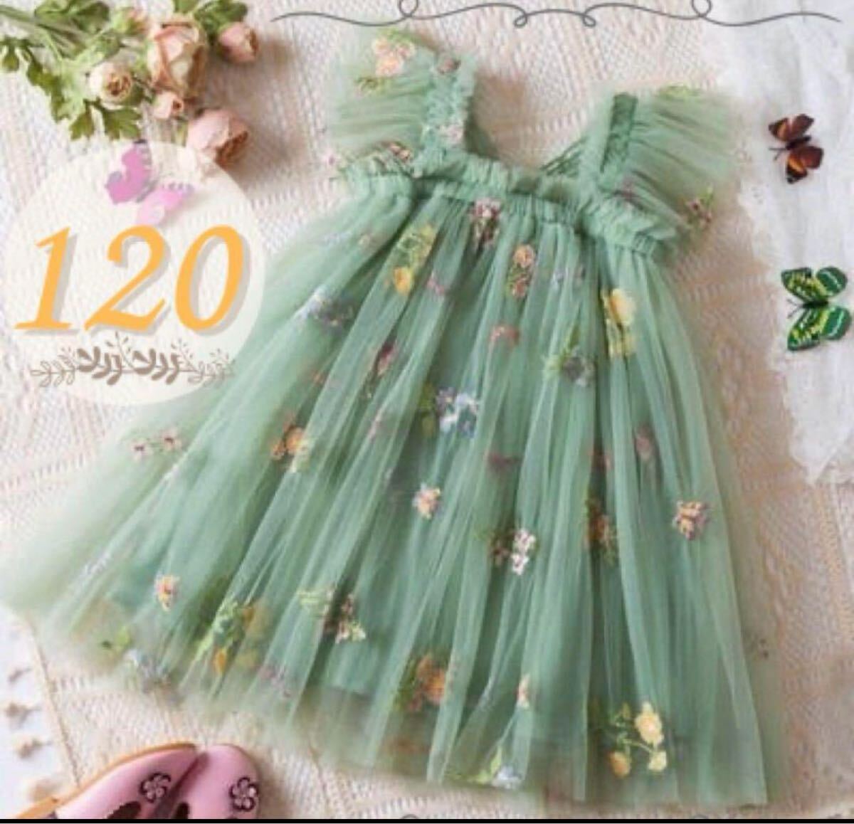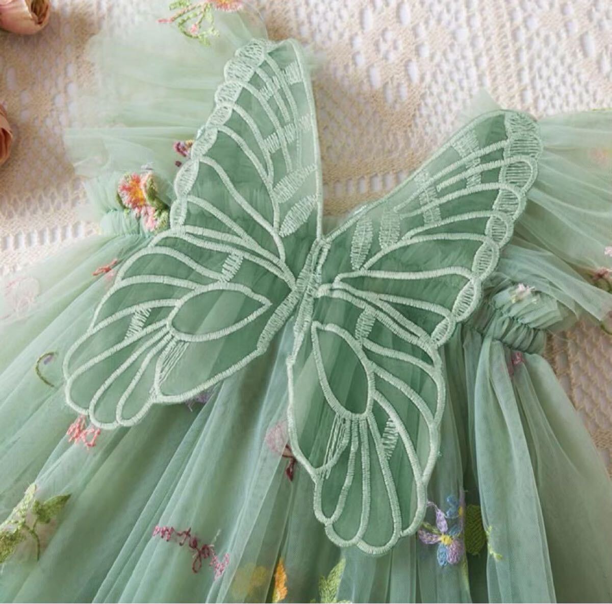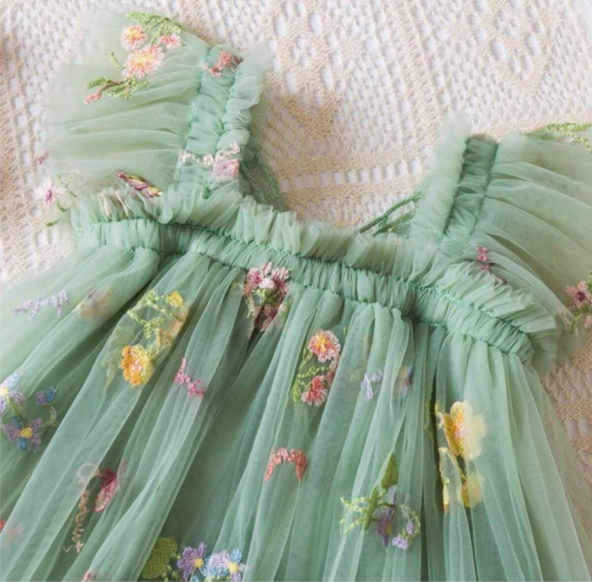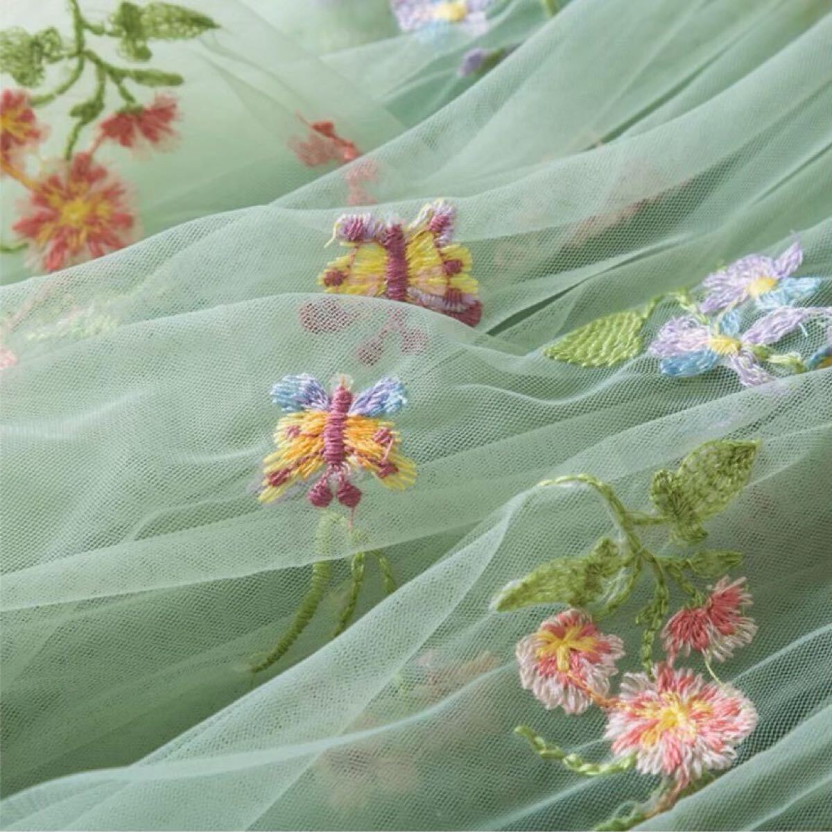 淡いグリーンのチュール生地に