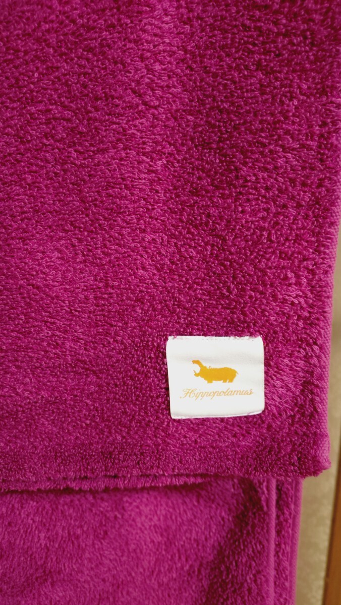 ヒポポタマスのタオルは、今までのオーガニックタオルにはなかった鮮やかな色にこだわりました。深みのある色彩を表現するために、表面のパイル組成をバンブーレーヨン(再生竹繊維)とオーガニックコットン(有機栽培綿)のハーフ&ハーフにしています。この異なる2つの繊維の染め足の違いによって深みのある濃淡2配色を実現しました。