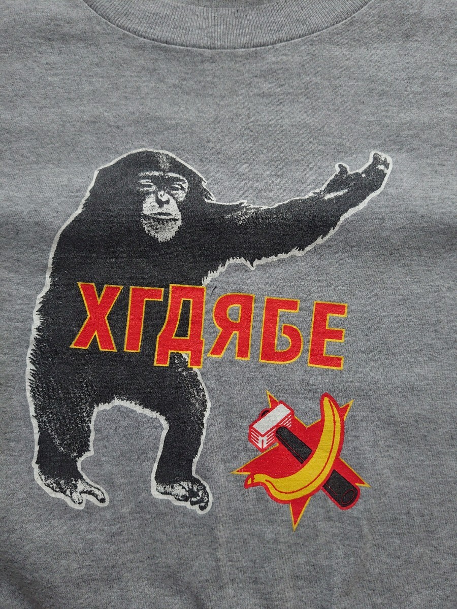 90s頃のエクストララージのUSA製Tシャツです。お猿にソビエトの国旗柄と面白い柄だと思います。サイズ表記はXLで状態は使用感などがあります。なにぶん古い物なのでよろしくお願いします。発送はレターパックライトで行います。