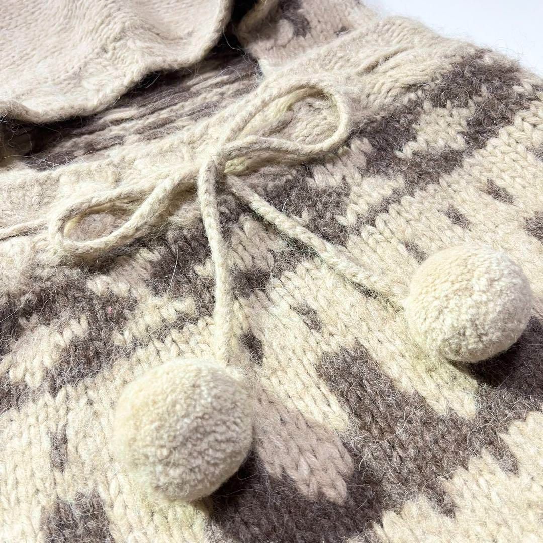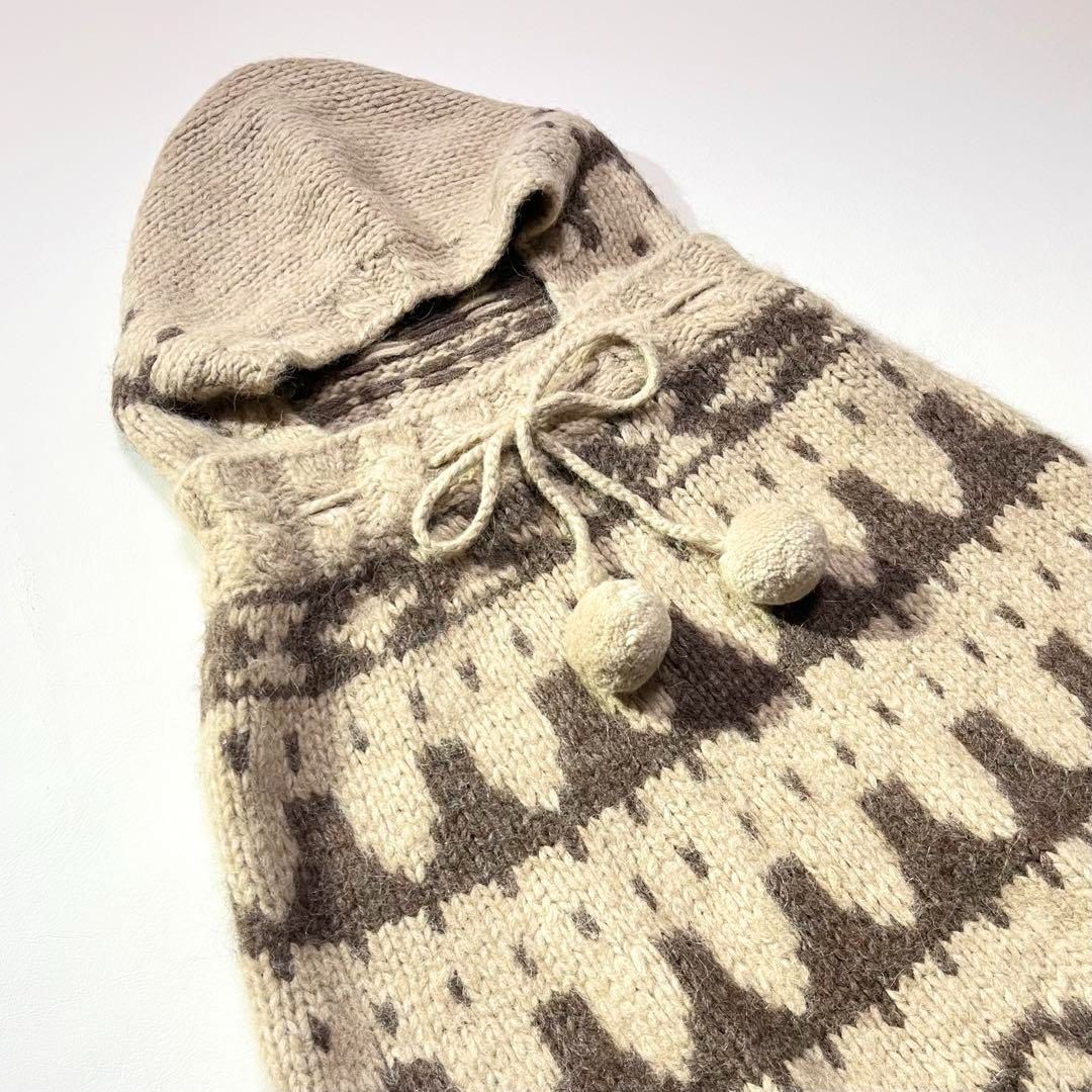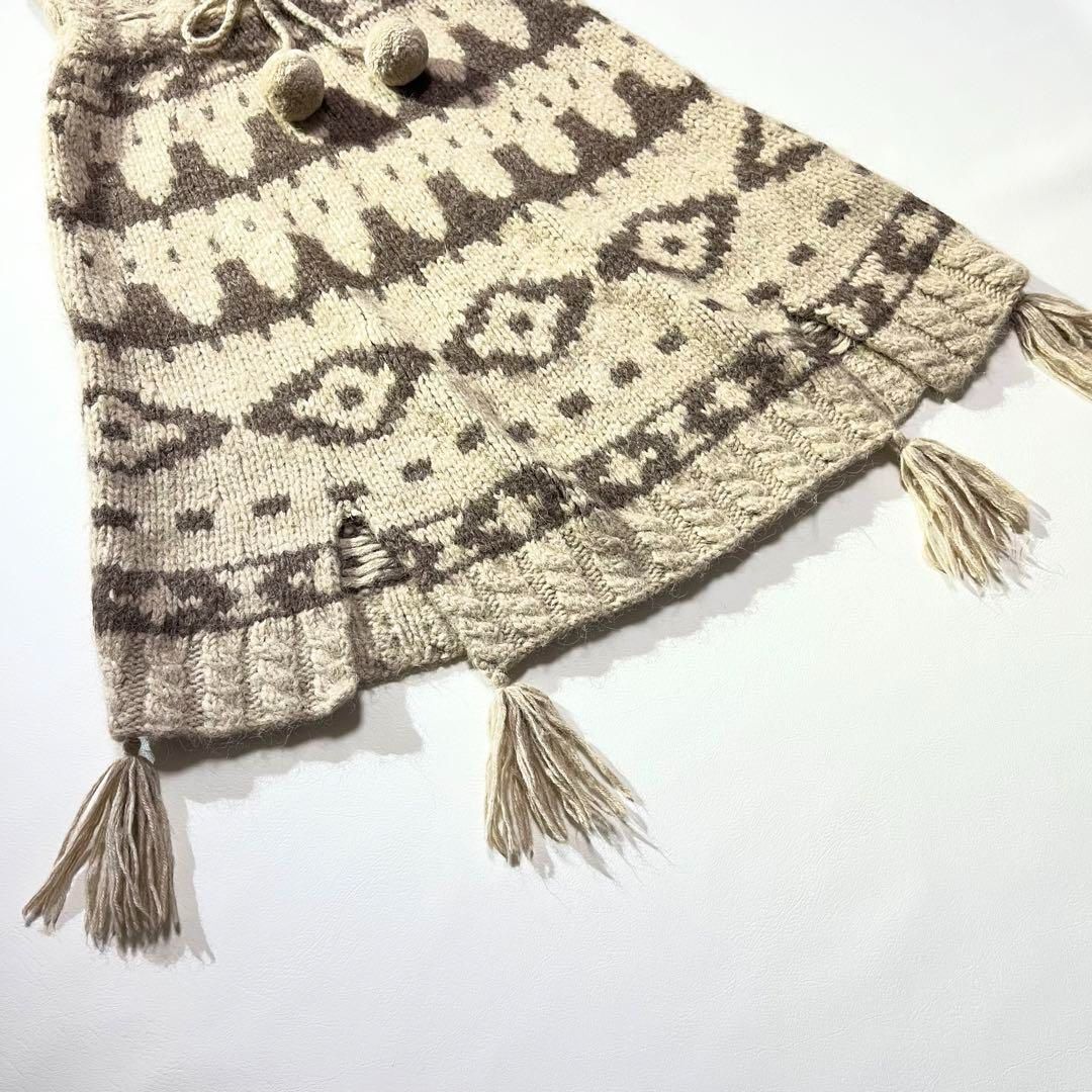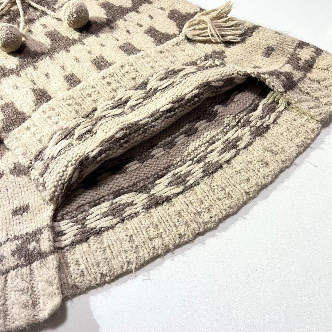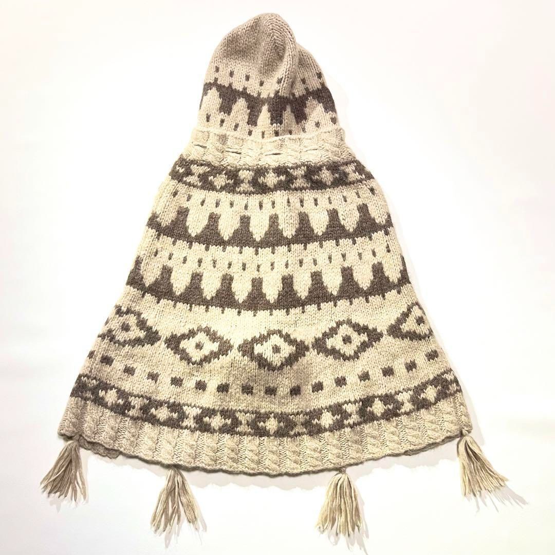 ウールナイロン エスニック ポンチョ インディアン ネイティブ柄 カウチン ノルディック柄 セーター ニット ケープコート アウター フード付き フーデッド