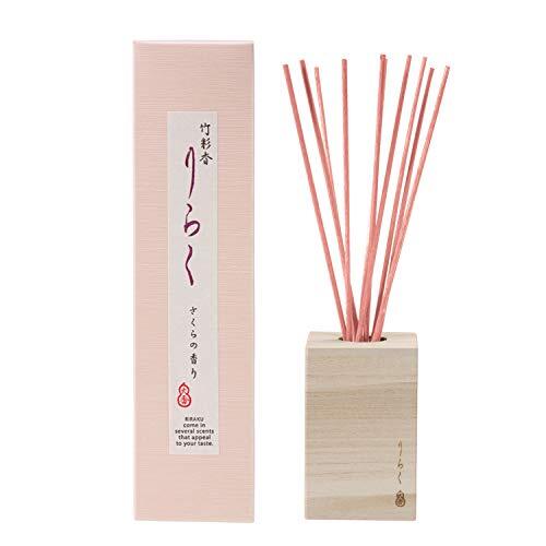 「大香 竹彩香りらく さくら スティック ピンク」▼4904872370239▼(商品説明)ピンク/-/-・FlavorName:さくら・パッケージ個数:1・(b)原産国 :(/b) 日本・(b)内容量 :(/b) 50ml・(b)商品サイズ (幅X奥行X高さ) :(/b) 62×62×240mm商品紹介 文化が花咲いた平安時代より、日本を代表する花として親しまれてきた桜(さくら)。満開の桜の花をイメージしたさわやかな甘さの可憐な香りです。花器に見立てた桐箱。お線香のような彩り豊かな竹の花から、ほのかに薫る和の香り。お部屋に置くだけで手軽にお香の香りをお楽しみいただけます。数あるリードフレグランス商品の中でも類を見ない和情緒あふれる外観は、インテリアとしても存在感たっぷりです。持続時間:約1ヶ月 使用上の注意 ・本品は飲食物ではありません。誤飲にご注意ください。・本品の用途以外には使用しないでください。・万一目や口に入った場合や皮膚についた場合は、直ちに水で洗い流し、異常が見られる場合は医師に相談してください。・火気・高温・多湿・直射日光を避け、ペットやお子様の手の届かない所で使用・保管してください。・香料によって布もの・家具類が変色・変形する場合があります。ご注意ください。・ご使用中、竹スティックの染色剤が香料内に溶けだし、香料が変色しますが、品質には、問題ありません。・火気厳禁 原材料・成分 香料、アルコール 使用方法 (1)香料ボトルのキャップを外し、ボトルごと桐箱に入れてください。香料をこぼさないようにご注意ください。 (2)桐箱の蓋を閉めてください。その際、本体の木目を合わせるようにしてください。 木目が合っていないと、きれいに閉まらない場合がございます。 (3)竹スティックの巻紙を外し、香料ボトルにバランスよく挿 してください。 竹スティックが香料を吸い上げ、香りを空間に広げます。 香料が少量になると、香りが弱く感じられる場合があります。 その際は竹スティックの上下を入れ替えてください。 香料が手につきますので、作業後は手を洗ってください。 安全警告 製品本来の目的以外の用途には使用しないでください。(ケガや故障の原因となります)