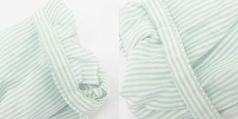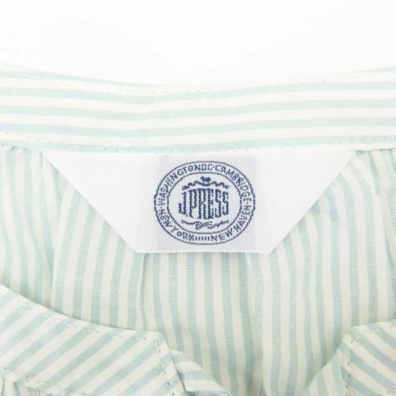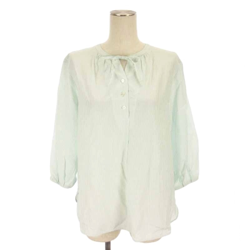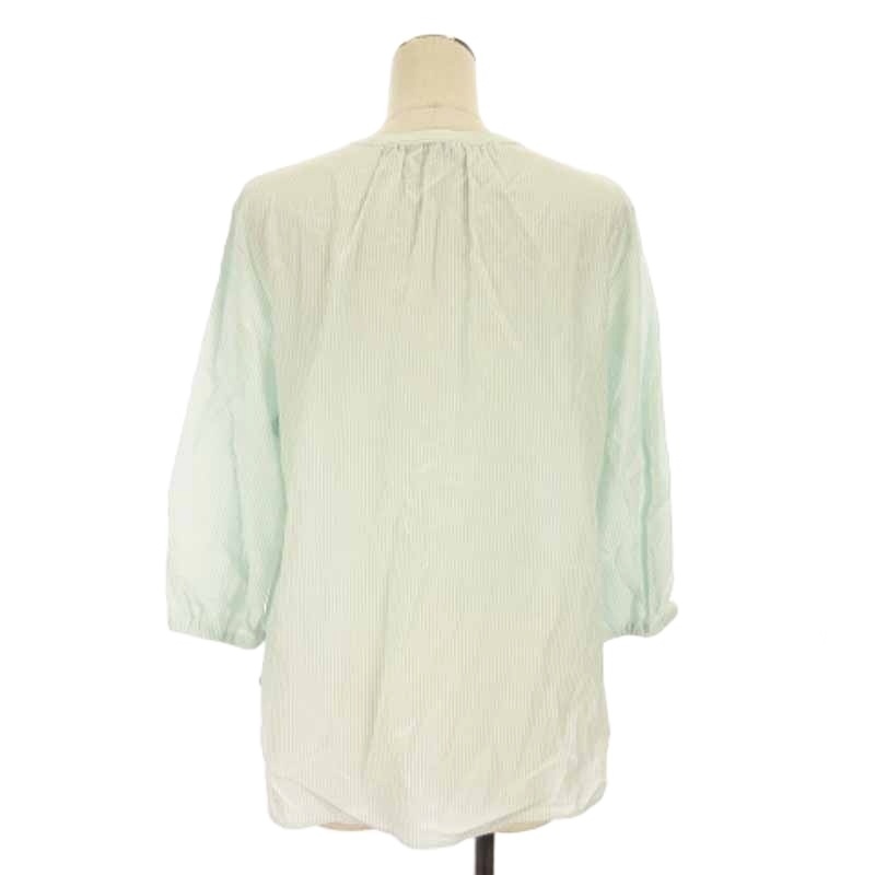 ジェイプレス J.PRESS コットンアセVis ストライプ ギャザー ブラウス シャツ 七分袖 ギャザー 緑 ライトグリーン 9 レディース