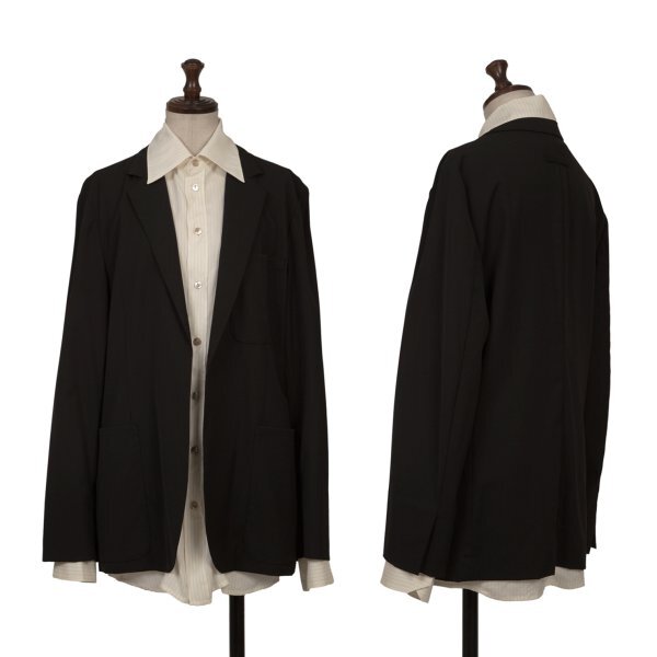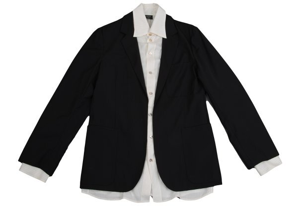 ジャンポールゴルチエファムJean Paul GAULTIER FEMME ストライプシャツレイヤードデザインテーラードジャケット 黒オフ他40 |