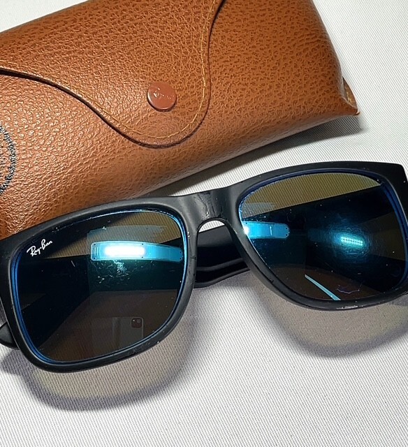 ケース付き 美品 Ray-Ban レイバン RB4165-F サングラス アイウェア メガネ ブラックフレーム 622/55 54 ミラー ブルーレンズ ウェリントン