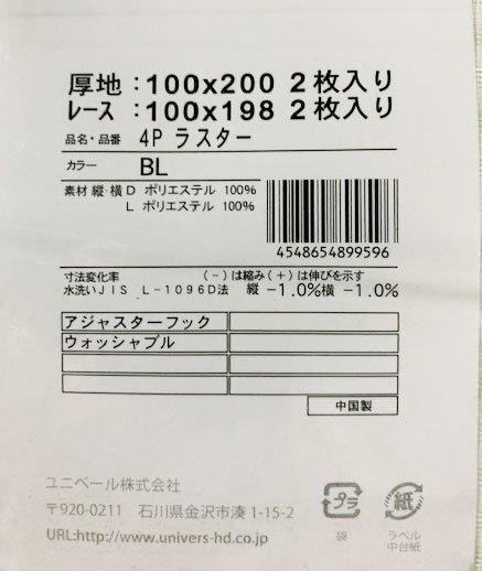 送料無料(北海道、沖縄は1500円別途ご負担)100×200cm ドレープカーテン2枚+レースカーテン2枚 4枚セット ラスターブルー100200