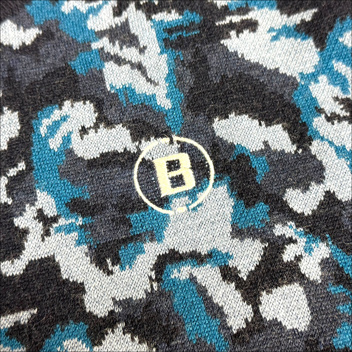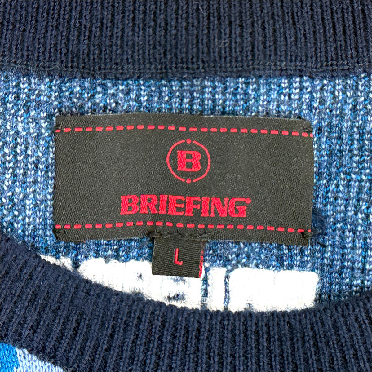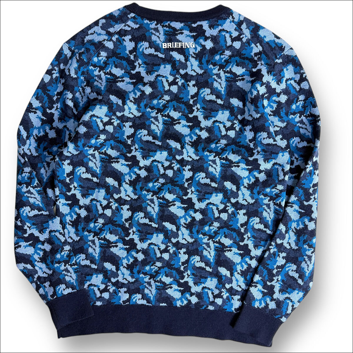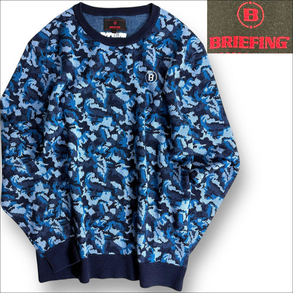 J7321 美品 ブリーフィングゴルフ ストレッチ カモフラ柄ニット ブルー系 L BRIEFING GOLF