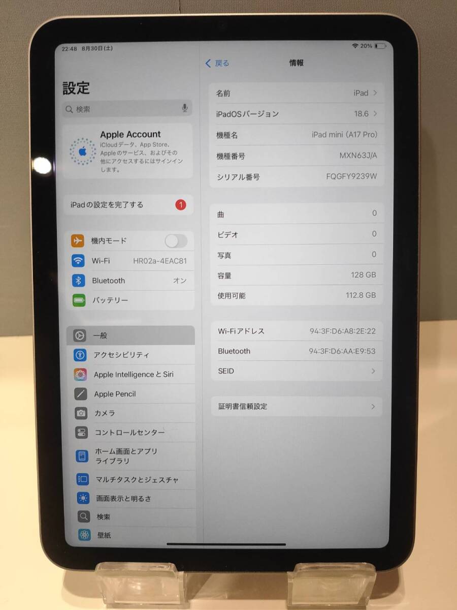 □機種名:iPad mini 第7世代 Wi-Fiモデル