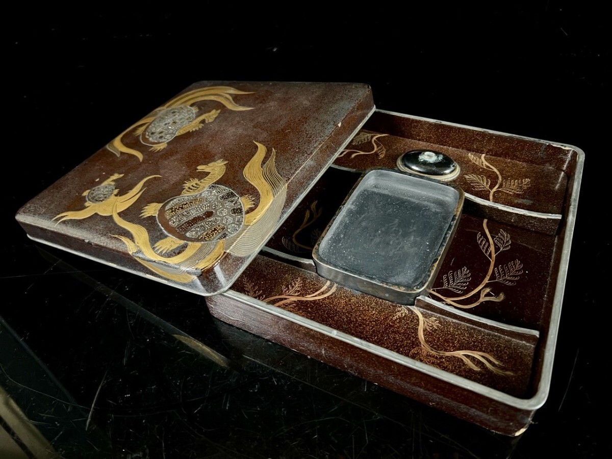 硯箱 高さ:約5cm 幅:約24.5cm 奥行き:約22cm