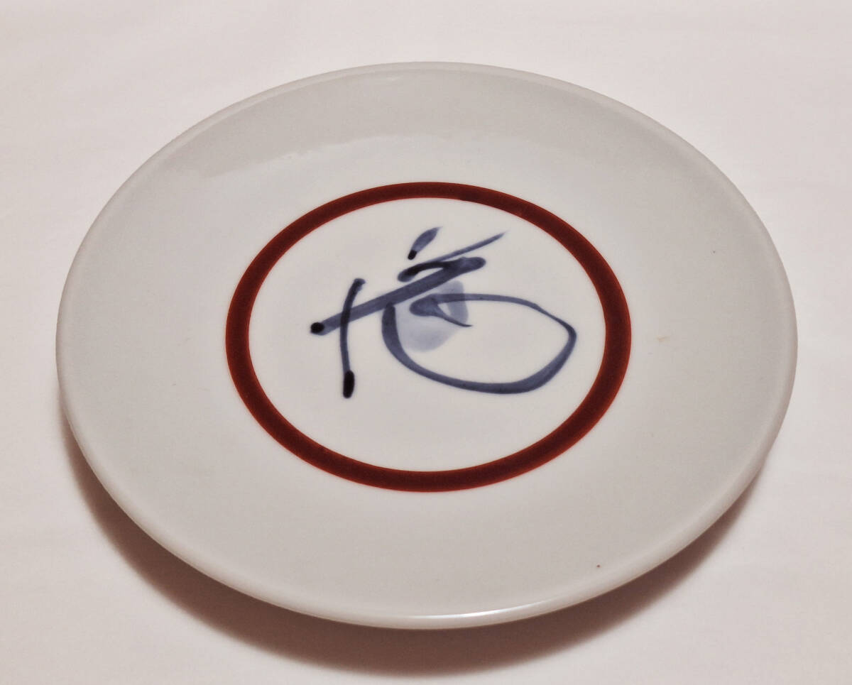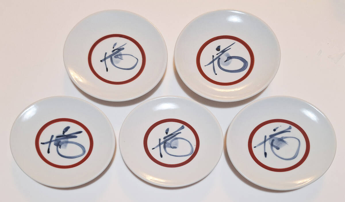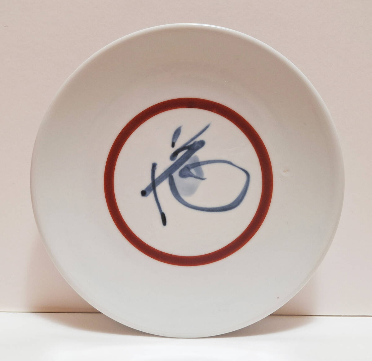 富本憲吉の代表的な作品「花字皿」です。染付の花字が鮮やかな赤絵に縁どられています。贅沢な五客組の共箱で、完品の揃いはたいへん貴重かと存じます。