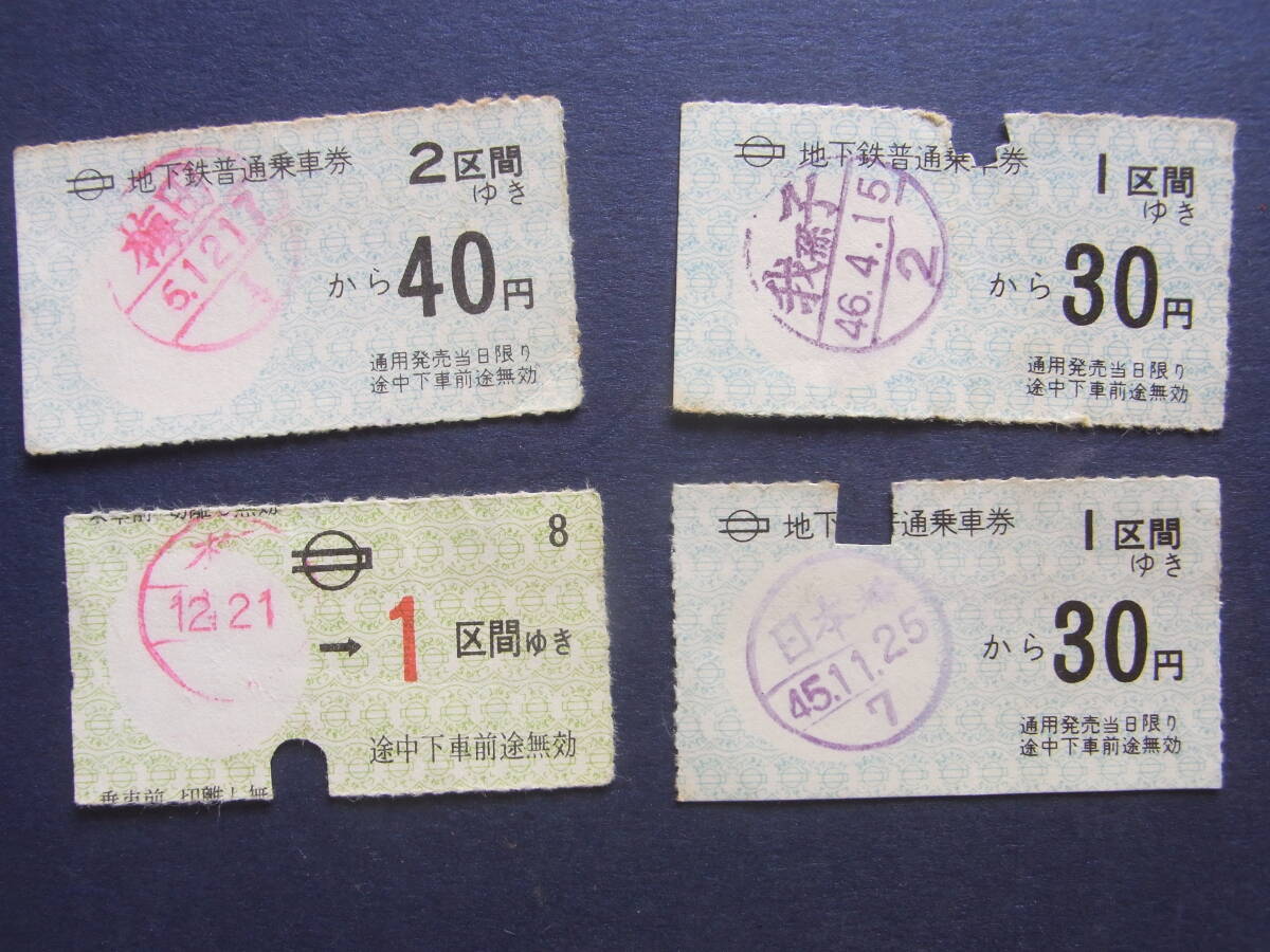 大坂市営地下鉄普通乗車券 手売り 昭和45年・46年