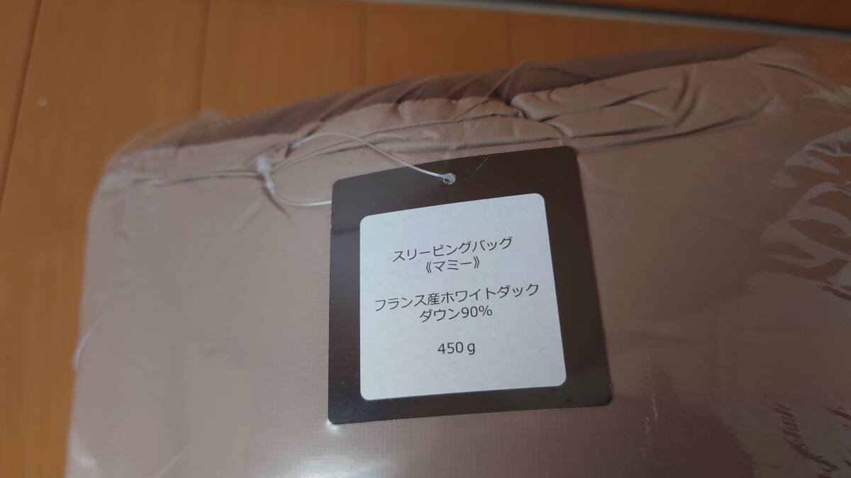 FUGAKU ダウンシュラフ 未使用 F90 SLEEPING BAG/MUMMY 450 ベージュ フランス産ホワイトダックダウン450g 780FP マミー型 の出品です。未開封新品です。