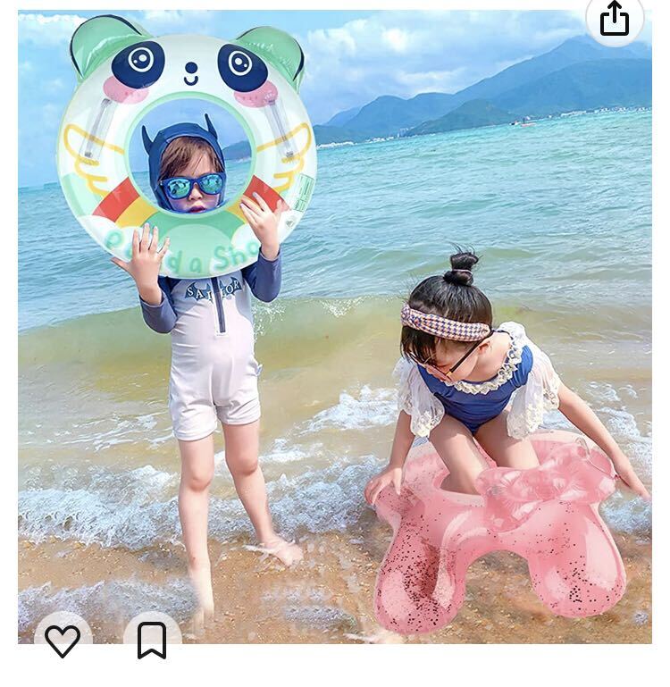 【パンダ柄の浮き輪】パンダ柄とかわいい耳のデザインで、さまざまなゲームスタイルに対応できる、お子さまの夏をもっと楽しくする。