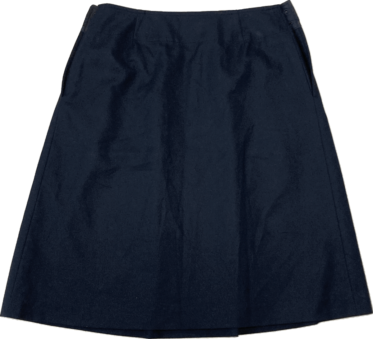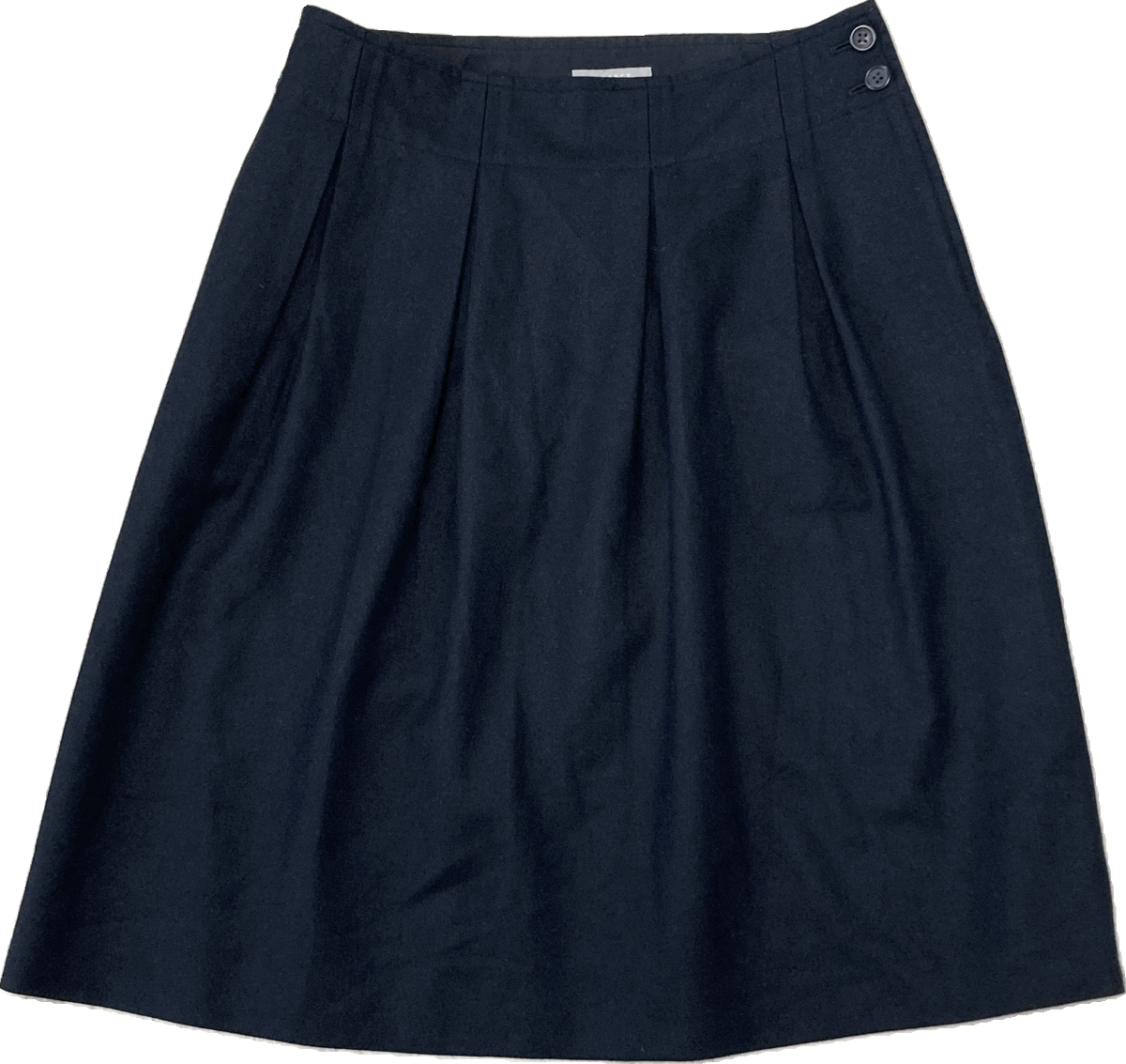 ■ウエスト両サイドボタン留め、サイドポケット付き、前4ボックスプリーツのフレアスカートです。