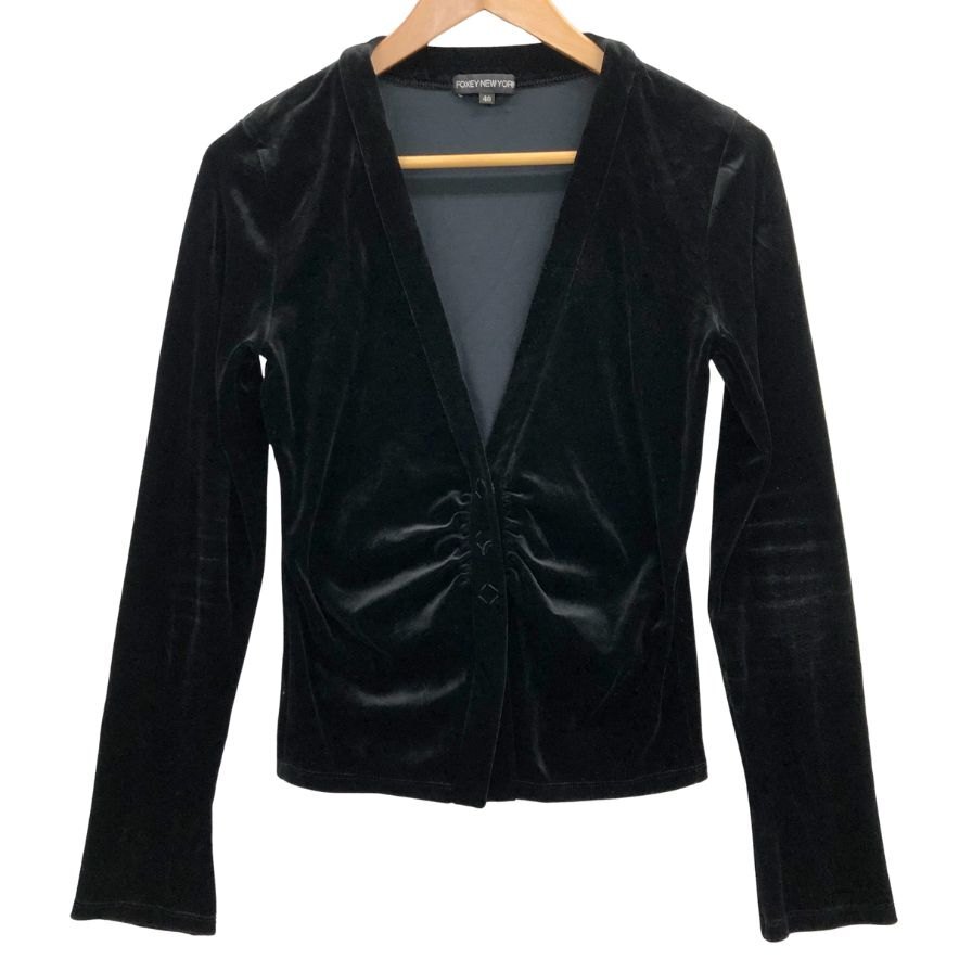美品◆カーディガン フォクシー ニューヨーク ベロア風カーディガン ブラック 40サイズ 19842-ARJAY50 FOXEY NEW YORK 【AFB8】