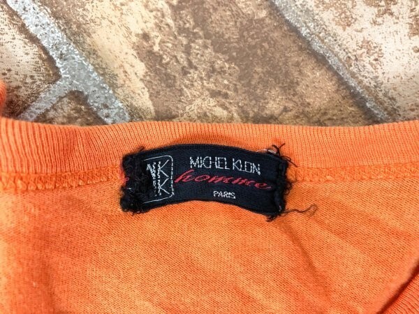 MICHEL KLEIN HOMME ミッシェルクランオム メンズ 英字プリント 半袖Tシャツ M オレンジ
