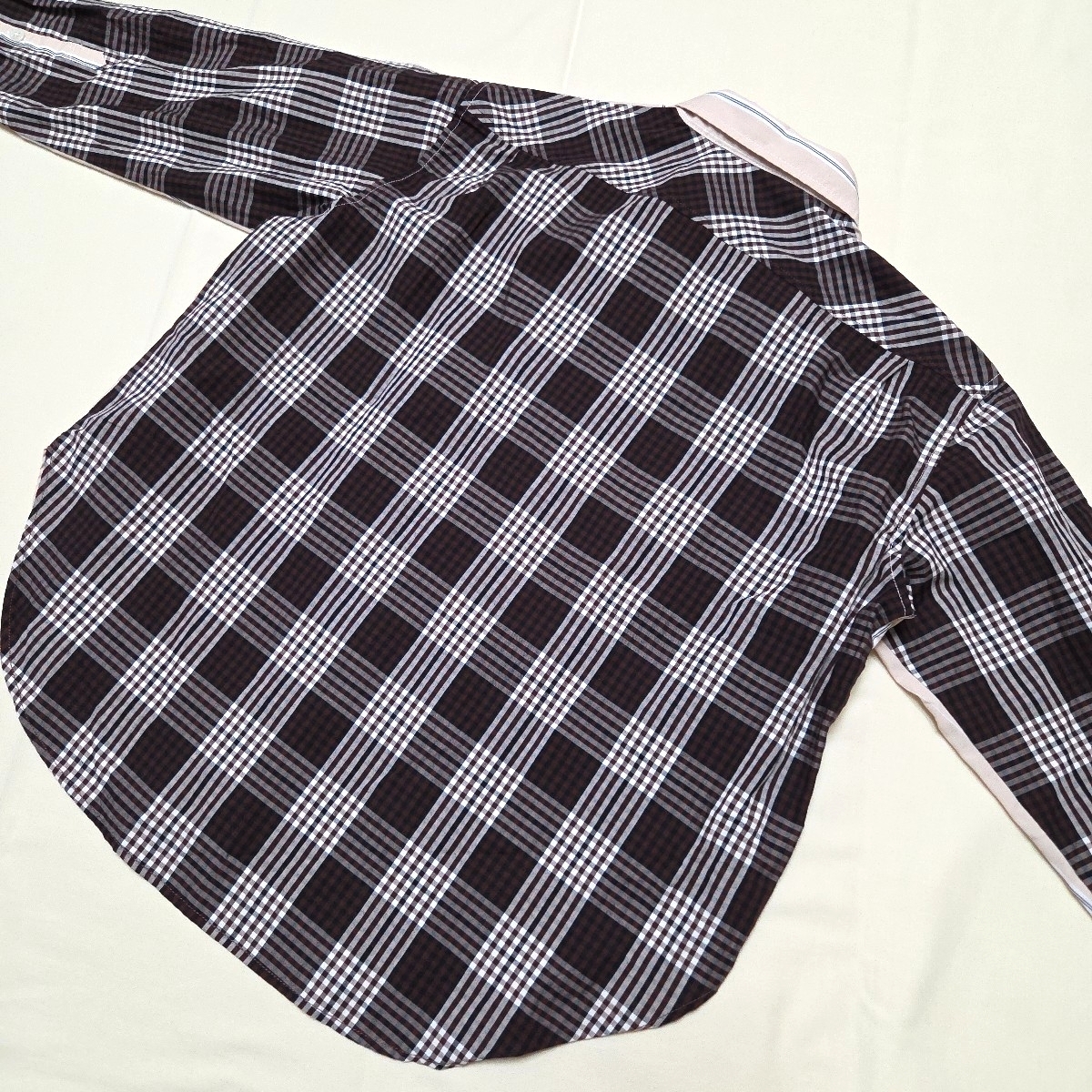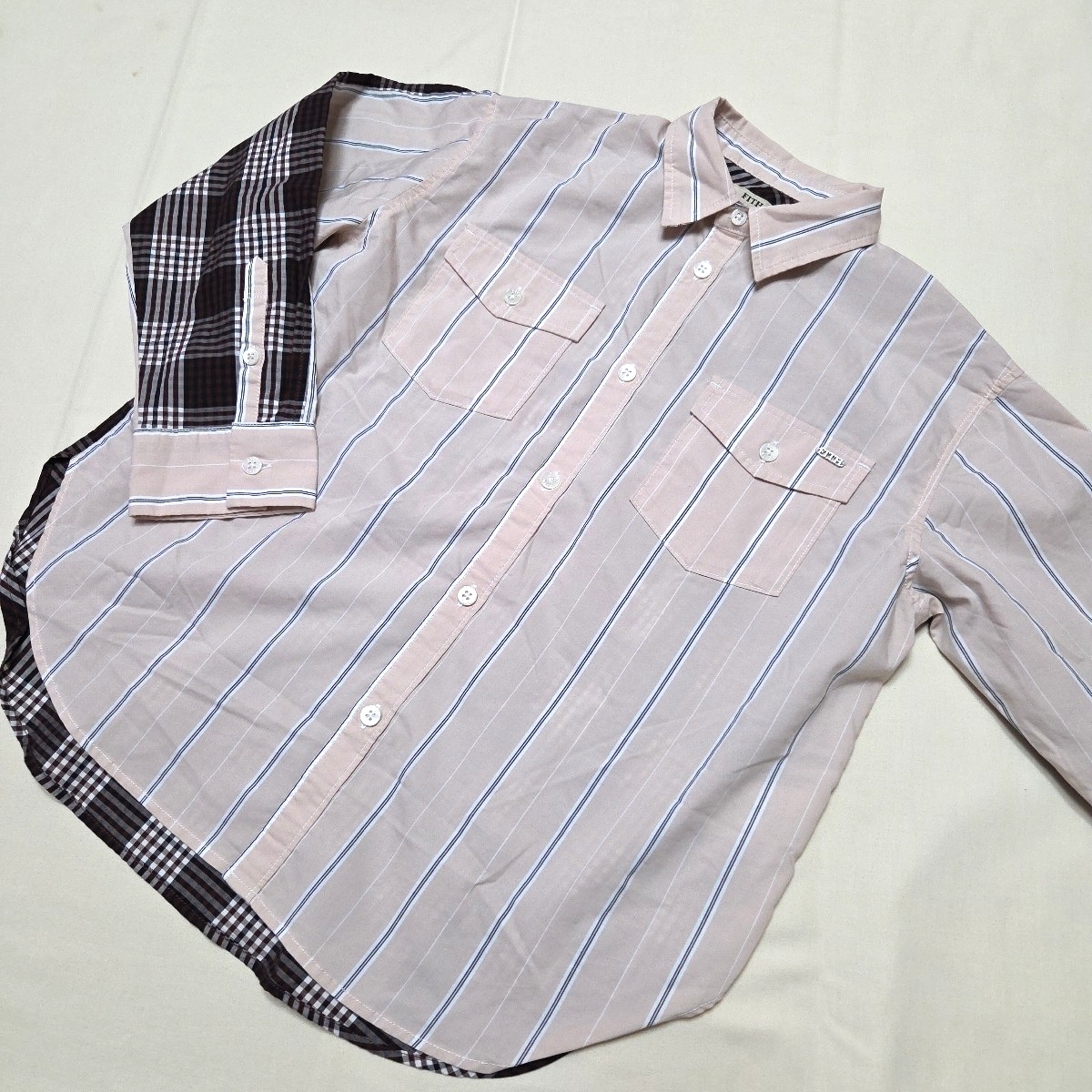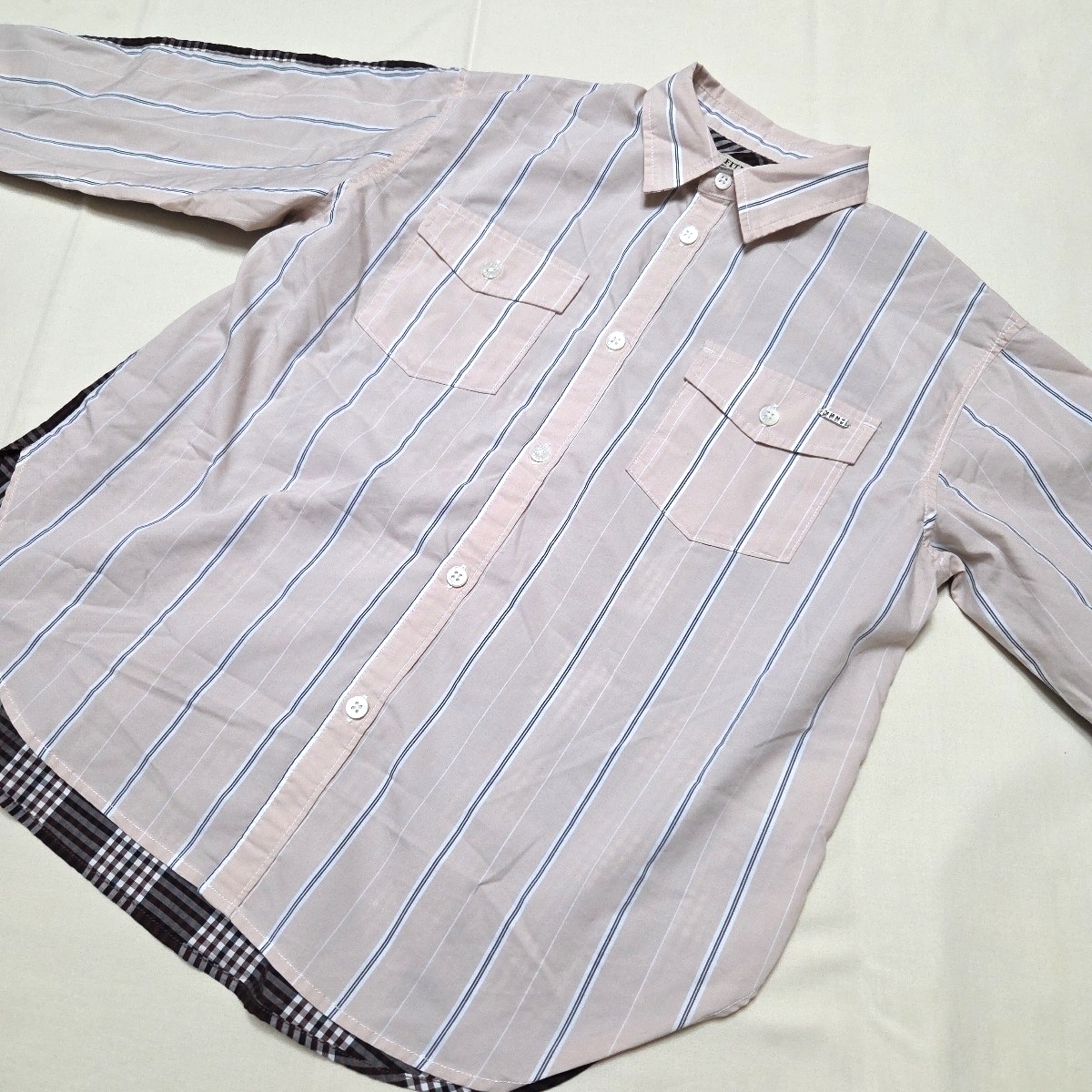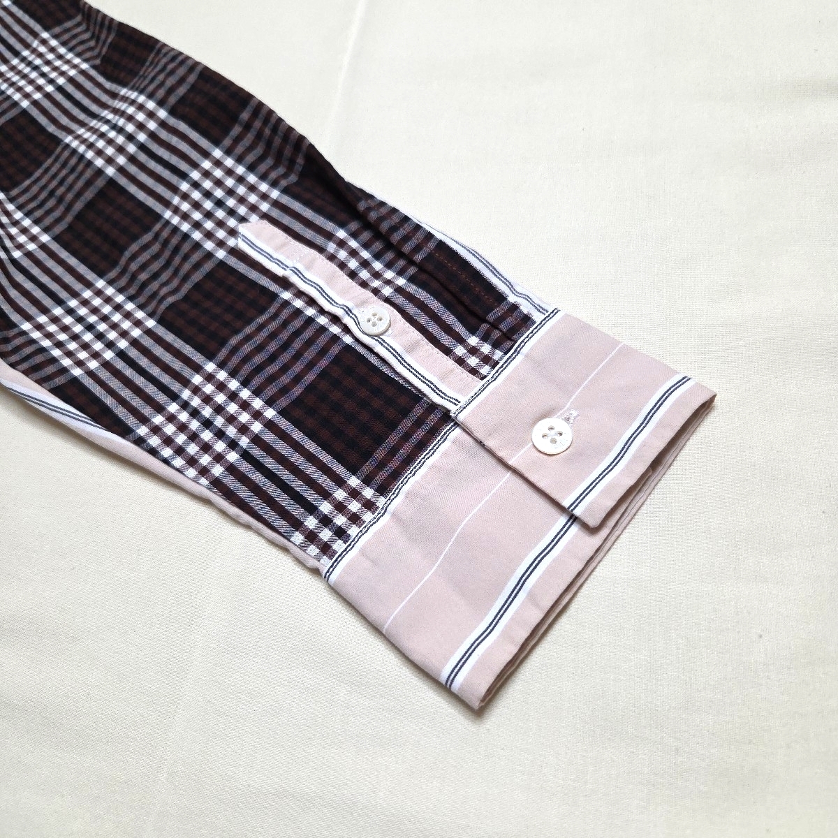 ストライプとチェックを合わせたおしゃれなシャツです。