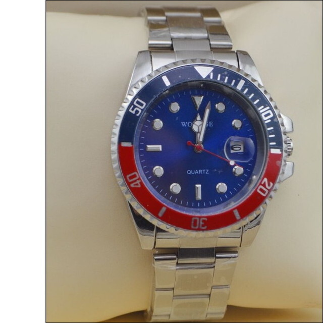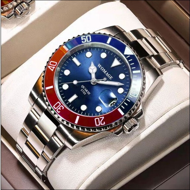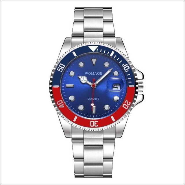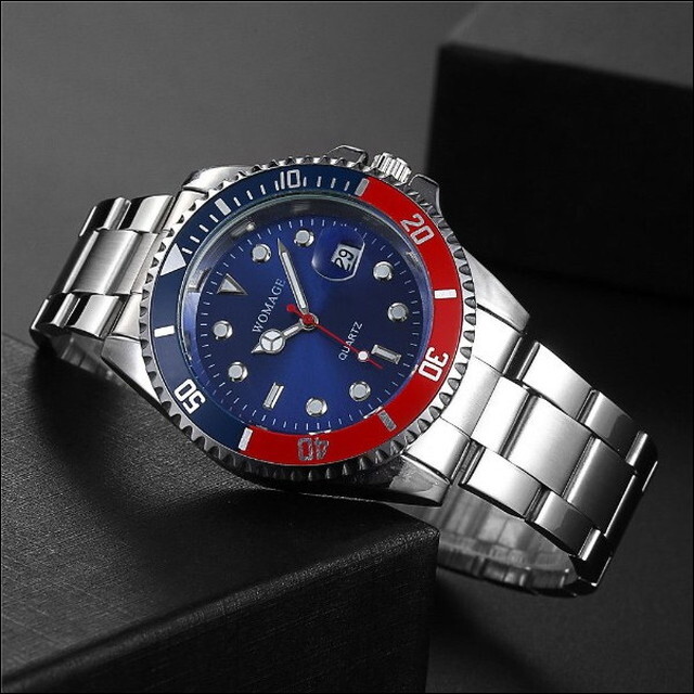 ◆ クリスマスセール ◆ 新品 WOMAGE ミリタリー ビジネス 腕時計 日付表示 青赤 【 人気ブランド 高品質 2025年 新作 メンズ 】